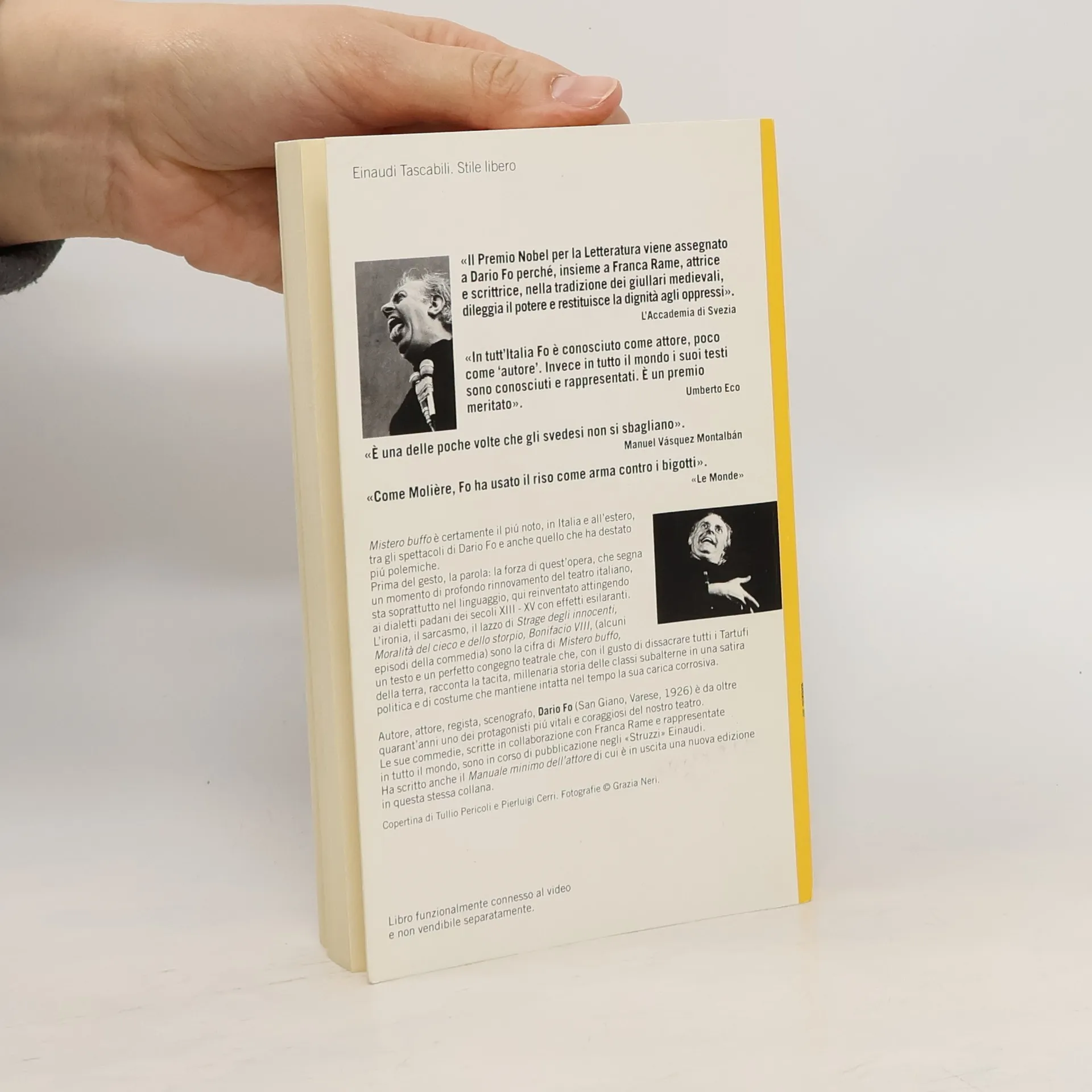 Mistero buffo, il più noto tra i testi teatrali di Dario Fo e Franca Rame, quello che ha destato piú polemiche, viene qui presentato in “edizione integrale”, proponendo anche i cambiamenti avvenuti nel corso degli anni nelle oltre cinquemila repliche effettuate da Dario Fo in Italia e all’estero tra il 1969 e il 2003. La forza di questa giullarata sta soprattutto nel linguaggio, reinventato attingendo ai dialetti padani dei secoli XII-XV con effetti esilaranti. L’ironia, il sarcasmo, il lazzo di Resurrezione di Lazzaro, Moralità del cieco e dello storpio, Bonifacio VIII, o la drammaticità di Maria alla Croce, La strage degli innocenti (alcuni episodi dell’opera), sono la cifra di Mistero buffo, un testo rivoluzionario e un perfetto congegno teatrale che, con il gusto di dissacrare tutti i Tartufi della terra, racconta la tacita, millenaria storia delle classi subalterne esplodendo in una satira politica e di costume che mantiene intatta nel tempo la sua carica corrosiva.