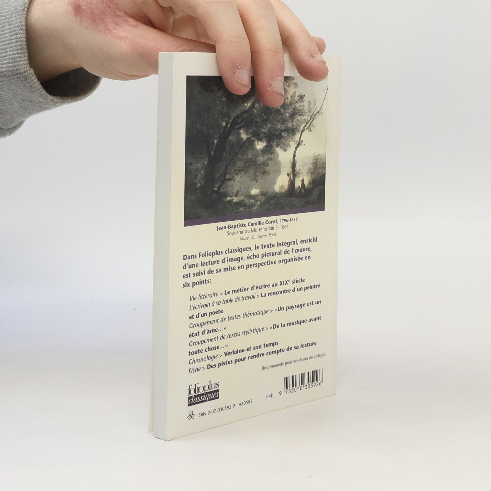 Dans Folioplus classiques, le texte intégral, enrichi d'une lecture d'image, écho pictural de l'œuvre, est suivi de sa mise en perspective organisée en six points : - Vie littéraire : Le métier d'écrire au XIXe siècle - L'écrivain à sa table de travail : La rencontre d'un peintre et d'un poète - Groupement de textes thématique : " Un paysage est un état d'âme... " - Groupement de textes stylistique : " De la musique avant toute chose... " - Chronologie : Verlaine et son temps - Fiche : Des pistes pour rendre compte de sa lecture.
