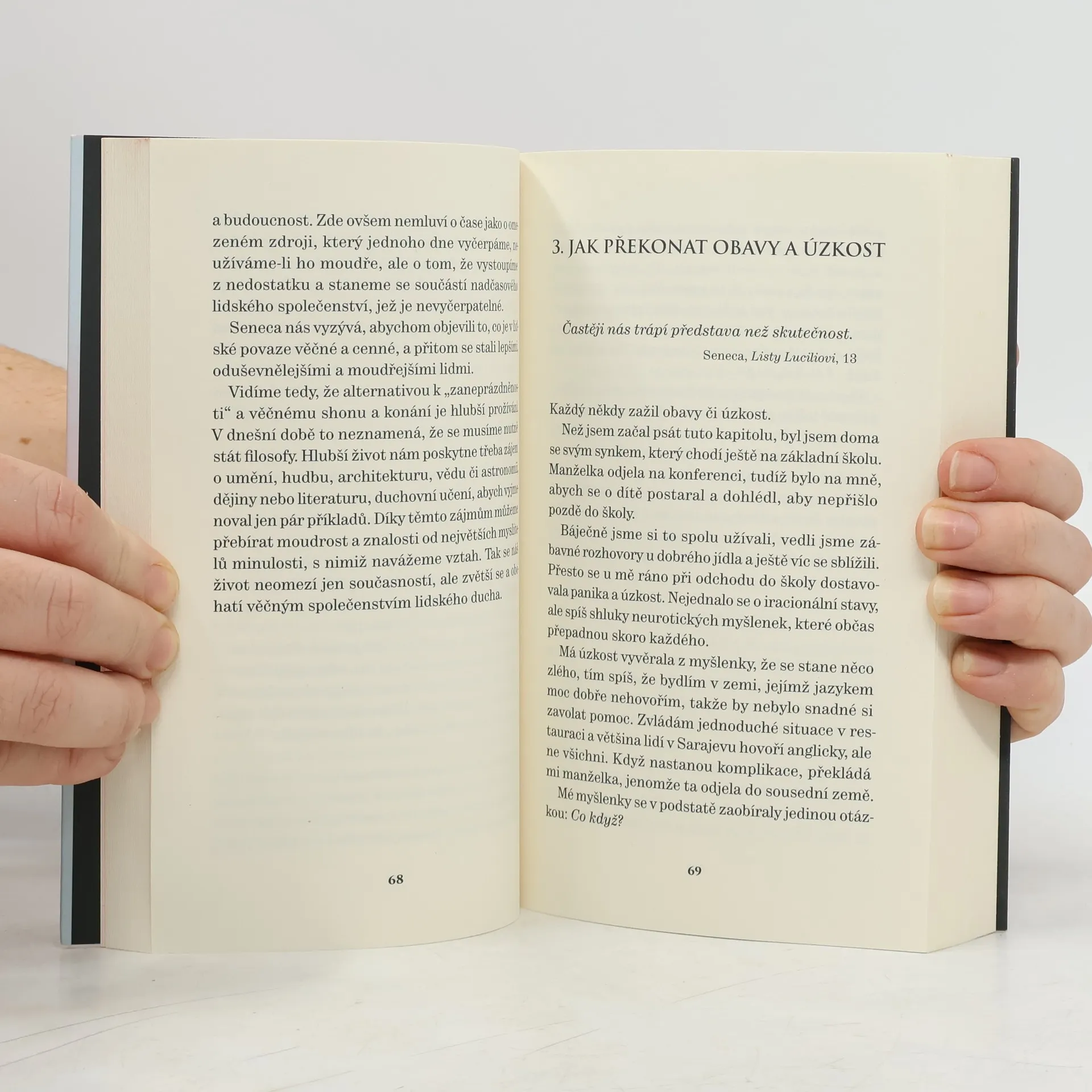 V dnešní době zaznamenáváme obrovský zájem o stoicismus, ale přestože je Seneca označován za „nejpřesvědčivějšího a nejelegantnějšího ze stoických spisovatelů“, nikdo dosud nenapsal knihu, v níž by jeho učení přiblížil běžnému čtenáři. Doufám, že moje kniha tuto mezeru zaplní a osvětlí vám jeho filosofii. Možná že tato kniha ukojí zvědavost některých čtenářů, již se o Senekovu filosofii zajímají.Mezi stoiky Seneca vyniká hlubokým psychologickým vhledem do lidské povahy, ctižádosti i obav. Jako první učenec západního světa důkladně zkoumal psychologii konzumerismu. Výrazně přispěl i k pochopení emocí a hněvu a jeho myšlenky si uchovaly platnost dodnes. Krátce řečeno, Seneca nebyl akademický teoretik, nýbrž člověk, který to ve skutečnosti „všechno zažil“ – ty nejlepší i ty nejhorší stránky lidské povahy.[i] To, o čem psal, znal z první ruky a měl jedinečnou schopnost porozumět vnitřní, psychické motivaci lidí. Právě to z něj činí po dvou tisících letech nedocenitelného průvodce i pro moderního čtenáře. Senekova doba je tedy i naší dobou. Seneca je naším současníkem a my s ním sdílíme jeho nejhlubší obavy.