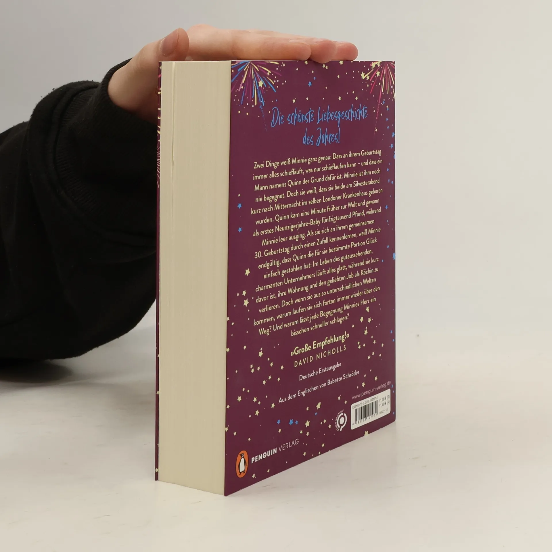 Zwei Menschen. Ein Schicksal. Eine unvergessliche Liebesgeschichte. Zwei Dinge weiß Minnie ganz genau: Dass an ihrem Geburtstag immer alles schiefläuft, was nur schieflaufen kann – und dass ein Mann namens Quinn der Grund dafür ist. Minnie ist ihm noch nie begegnet. Doch sie weiß, dass sie beide am Silvesterabend kurz nach Mitternacht im selben Londoner Krankenhaus geboren wurden. Quinn kam eine Minute früher zur Welt und gewann als erstes Neunzigerjahre-Baby fünfzigtausend Pfund, während Minnie leer ausging. Als sie sich an ihrem gemeinsamen 30. Geburtstag durch einen Zufall kennenlernen, weiß Minnie endgültig, dass Quinn die für sie bestimmte Portion Glück einfach gestohlen hat: Im Leben des gutaussehenden, charmanten Unternehmers läuft alles glatt, während sie kurz davor ist, ihre Wohnung und den geliebten Job als Köchin zu verlieren. Doch wenn sie aus so unterschiedlichen Welten kommen, warum laufen sie sich fortan immer wieder über den Weg? Und warum lässt jede Begegnung Minnies Herz ein bisschen schneller schlagen? »Genau richtig für einen Tag mit Kuscheldecke und heißer Schokolade. Unglaublich romantisch! Ein Buch wie eine Umarmung.« Josie Silver Das Taschenbuch in zauberhaft funkelnder Ausstattung.