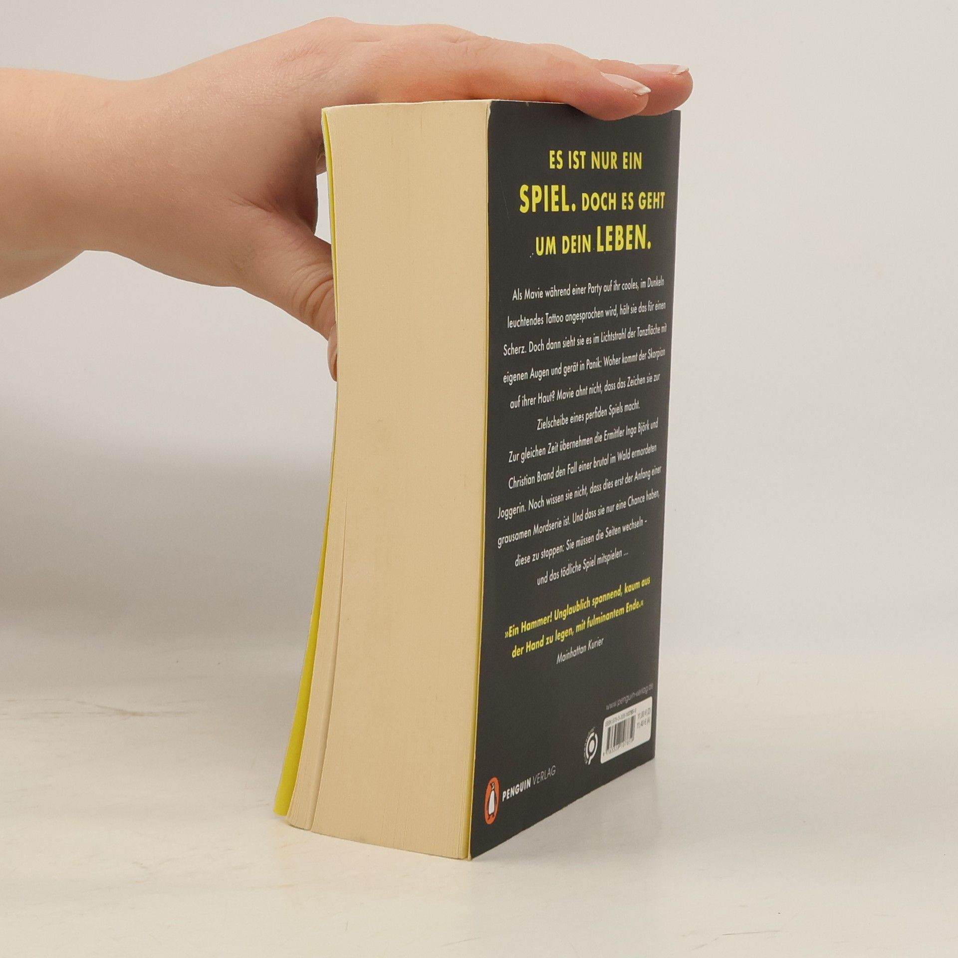 Es ist nur ein Spiel. Doch es geht um dein Leben.Als Mavie während einer Party auf ihr cooles, im Dunkeln leuchtendes Tattoo angesprochen wird, hält sie das für einen Scherz. Doch dann sieht sie es im Lichtstrahl der Tanzfläche mit eigenen Augen und gerät in Woher kommt der Skorpion auf ihrer Haut? Mavie ahnt nicht, dass das Zeichen sie zur Zielscheibe eines perfiden Spiels macht.Zur gleichen Zeit übernehmen die Ermittler Inga Björk und Christian Brand den Fall einer brutal im Wald ermordeten Joggerin. Noch wissen sie nicht, dass dies erst der Anfang einer grausamen Mordserie ist. Und dass sie nur eine Chance haben, diese zu Sie müssen die Seiten wechseln – und das tödliche Spiel mitspielen … »In diesem Fall geht’s gleich richtig zur Sache – da lässt Herr Fitzek grüßen. Ein Buch, das fesselt!« – Sonntag Express