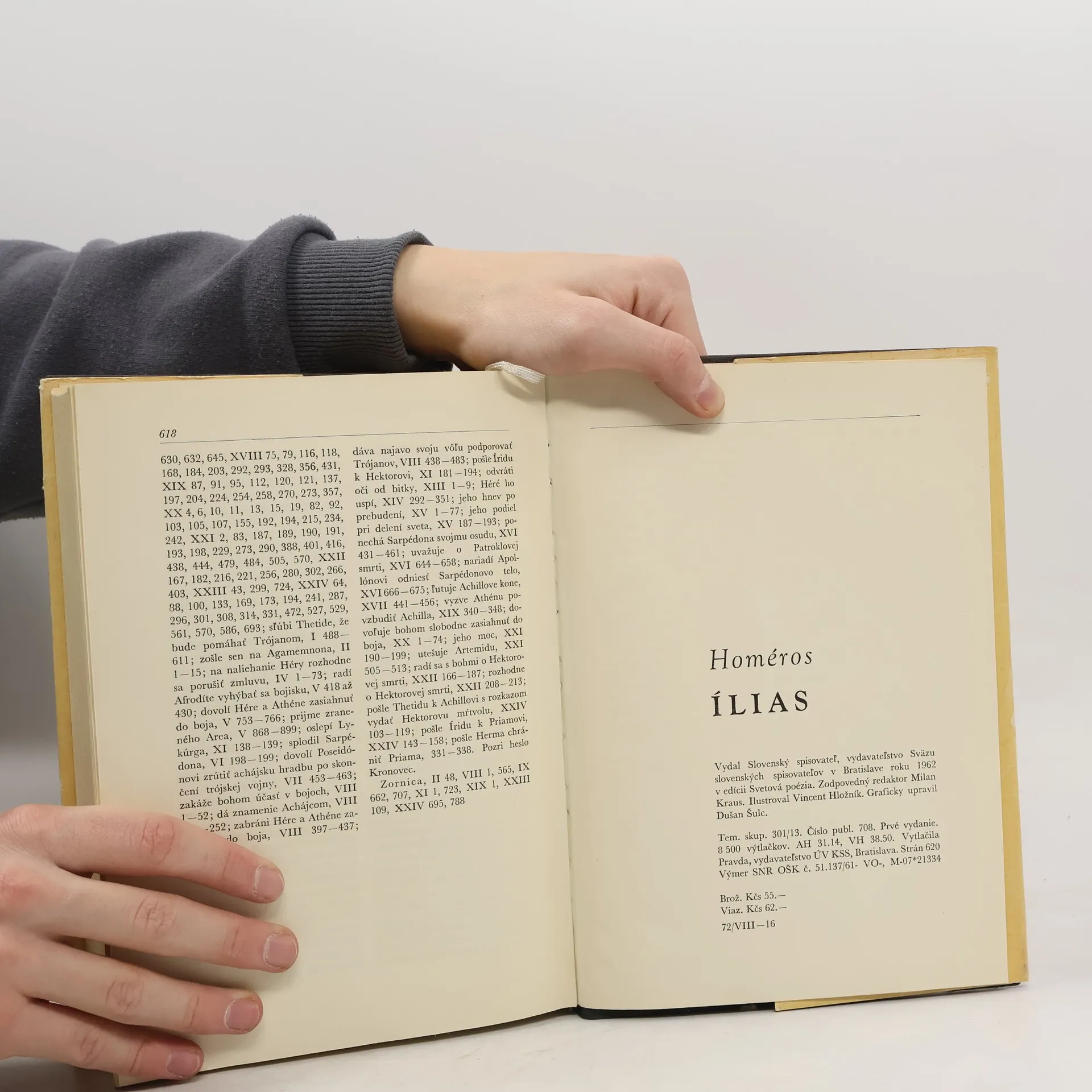 Homérova Ílias je najstarším zachovaným literárnym dielom v Európe, epickým opisom časti bojov vo vojne pri Tróji. Homéros čerpal námet z čias, keď Gréci víťazstvom ukončili desaťročnú vojnu s Trójanmi, pravdepodobne koncom 13. alebo začiatkom 12. storočia pred Kr. Dej sa sústreďuje na desiaty rok bojov pred Trójou. Konflikt medzi Grékmi a Trójanmi vyvrcholil únosom spartskej kráľovnej Heleny trójskym princom Paridom. Vojvodca Agamemnón zjednotil armádu z mykénskeho Grécka, aby potrestal Trójanov a zničil ich hradisko, no Trójania sa dlhodobo bránili. Príbeh sa začína konfliktom medzi Agamemnonom a najodvážnejším gréckym bojovníkom Achilleom, ktorého Agamemnón poníži pred celým vojskom. Po urážke sa Achilles rozhodne neparticipovať v bojoch. Agamemnónovo víťazstvo sa zdá byť na dosah, avšak bohovia majú iné plány a zasiahnu do vojny nečakaným spôsobom. Kniha obsahuje úvodnú štúdiu Miloslava Okála, ktorá sa zameriava na literárnu stránku eposu, a prvú časť štúdie Ivana Janeka, ktorá skúma historický rámec mykénskej epochy a približuje jednotlivé časti eposu.