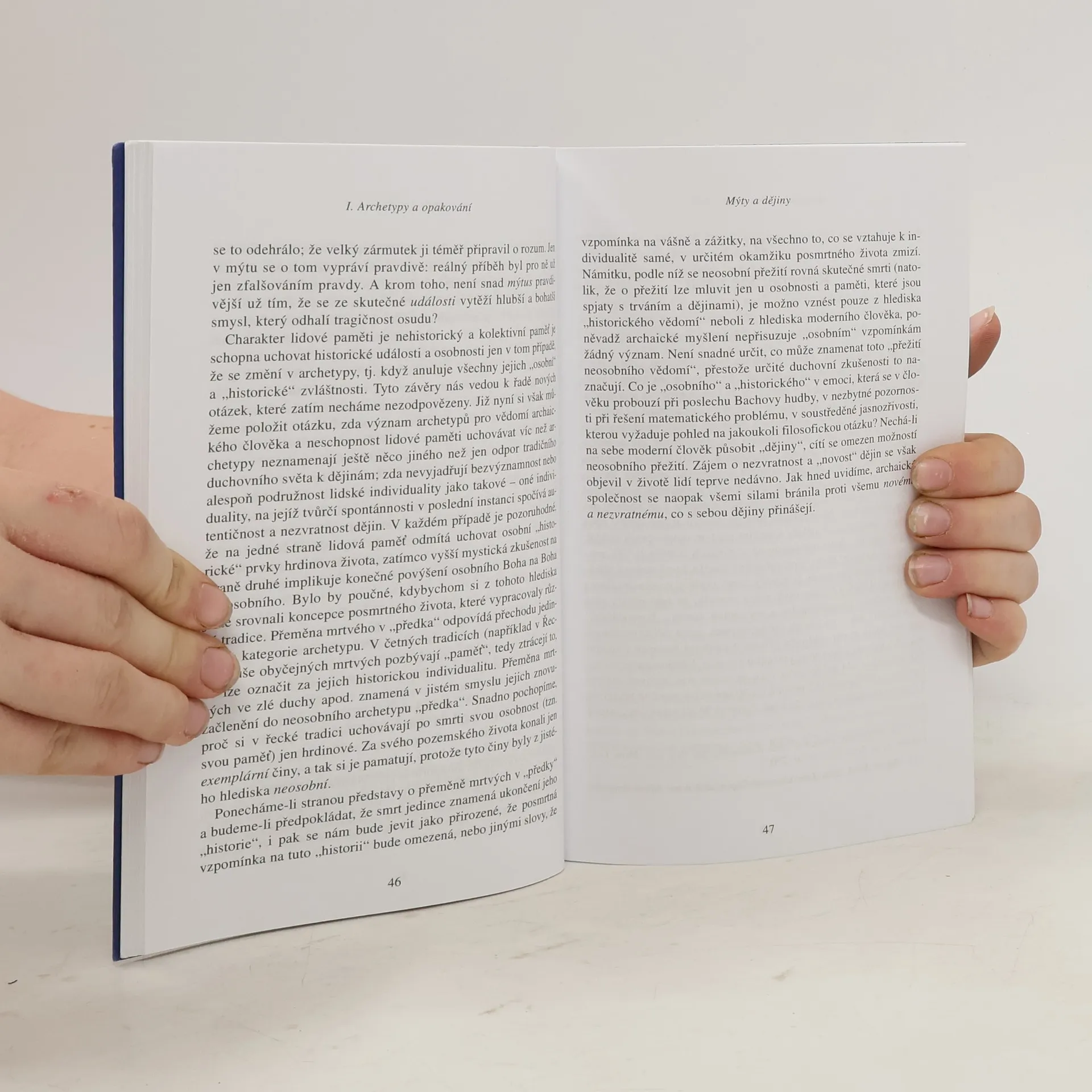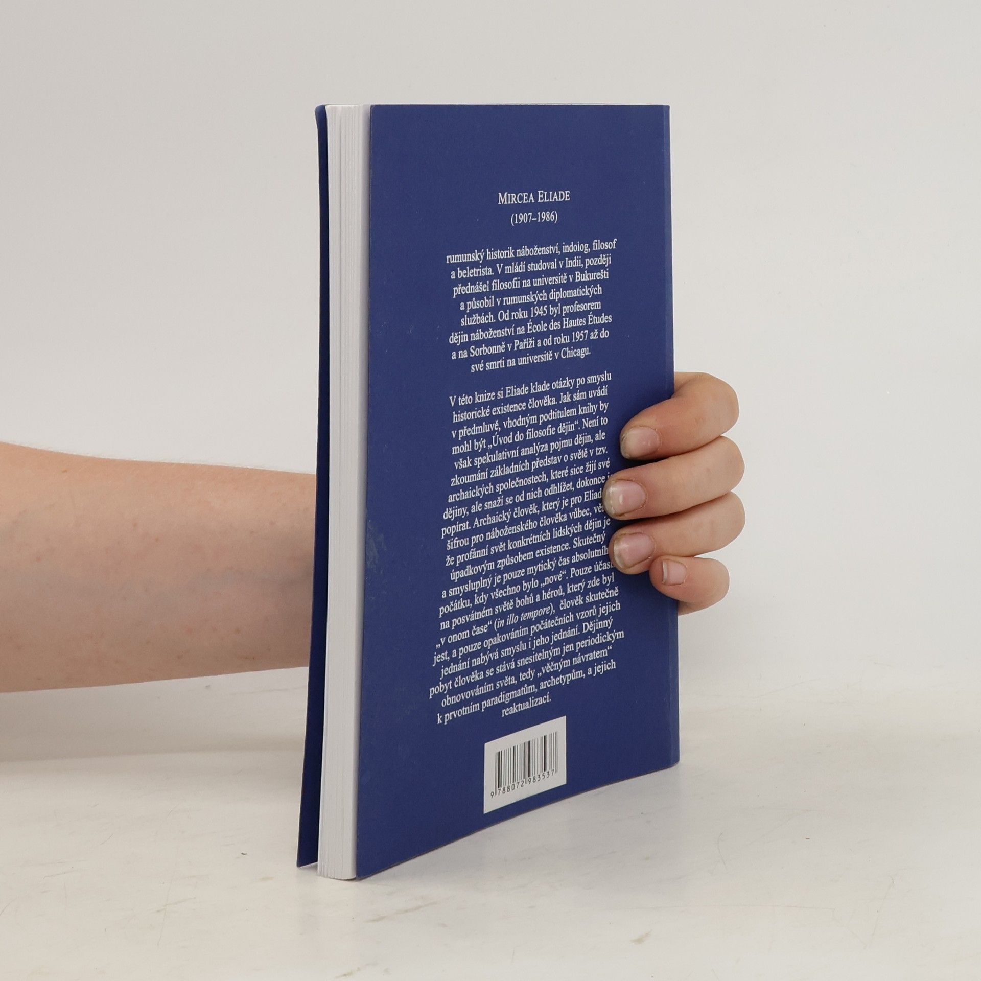 V této knize si Eliade klade otázky po smyslu historické existence člověka. Jak sám uvádí v předmluvě, vhodným podtitulem knihy by mohl být „Úvod do filosofie dějin“. Není to však spekulativní analýza pojmu dějin, ale zkoumání základních představ o světě v tzv. archaických společnostech, které sice žijí své dějiny, ale snaží se od nich odhlížet, dokonce je popírat. Archaický člověk, který je pro Eliadeho šifrou pro náboženského člověka vůbec, věří, že profánní svět konkrétních lidských dějin je úpadkovým způsobem existence. Skutečný a smysluplný je pouze mytický čas absolutního počátku, kdy všechno bylo „nové“. Pouze účastí na posvátném světě bohů a héroů, který zde byl „v onom čase“ (in illo tempore), člověk skutečně jest, a pouze opakováním počátečních vzorů jejich jednání nabývá smyslu i jeho jednání. Dějinný pobyt člověka se stává snesitelným jen periodickým obnovováním světa, tedy „věčným návratem“ k prvotním paradigmatům, archetypům, a jejich reaktualizací. Přeložila E. Strebingerová. Nové vydání 2019.