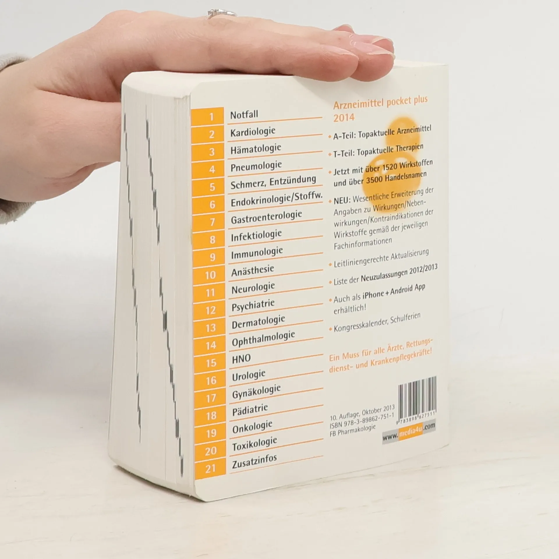 • A-Teil: Topaktuelle Arzneimittel • T-Teil: Topaktuelle Therapien • Jetzt mit über 1520 Wirkstoffen und über 3500 Handelsnamen • NEU: Wesentliche Erweiterung der Angaben zu Wirkungen / Nebenwirkungen / Kontraindikationen der Wirkstoffe gemäß den jeweiligen Fachinformationen • Leitliniengerechte Aktualisierung • Liste der Neuzulassungen 2012/2013 • Kann bald auch als iPhone + Android App erworben werden • Kongresskalender, Schulferien