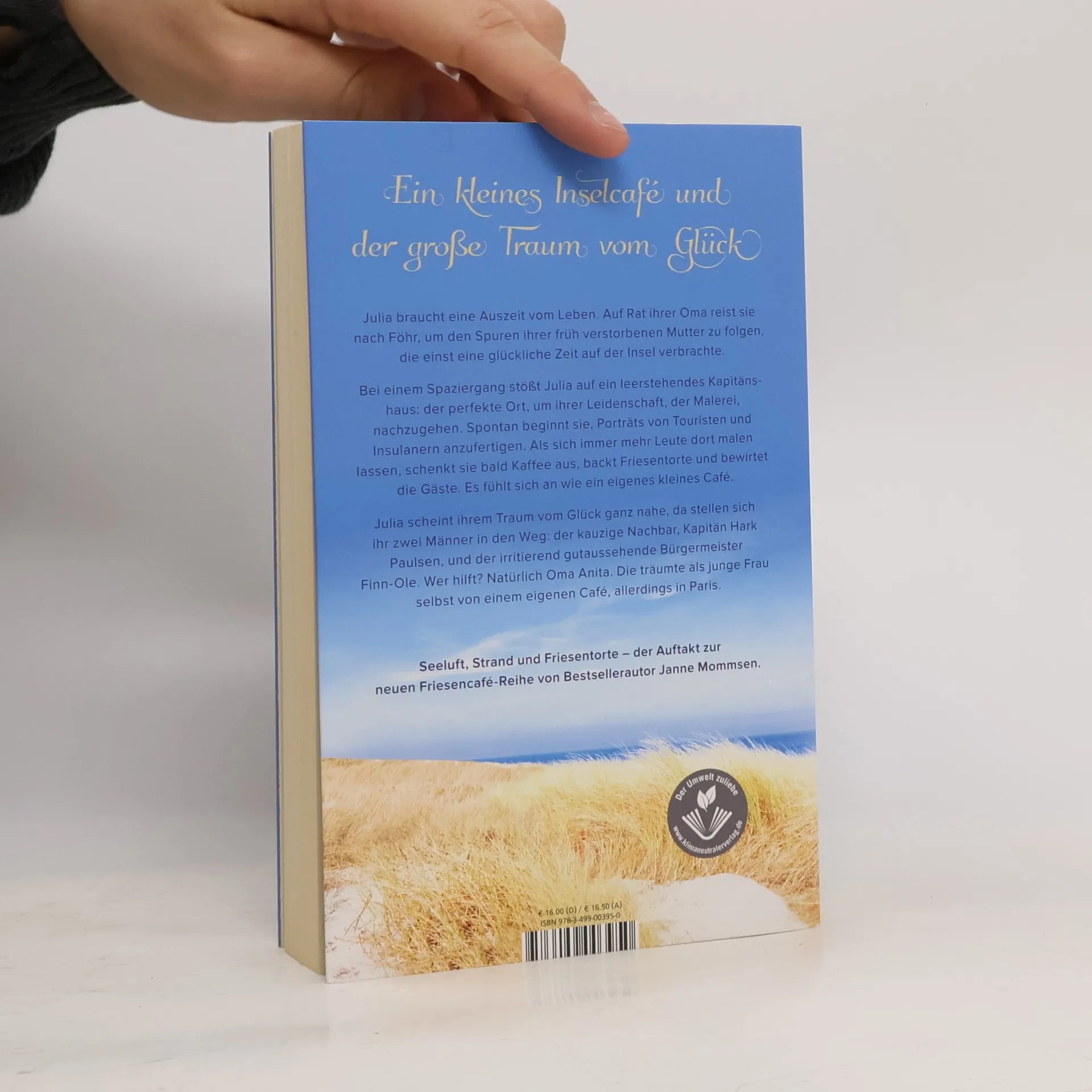 Seeluft, Strand und Friesentorte – der Auftakt zur neuen Friesencafé-Reihe von Bestsellerautor Janne Mommsen. Julia braucht eine Auszeit vom Leben. Auf Rat ihrer Oma reist sie nach Föhr, um den Spuren ihrer früh verstorbenen Mutter zu folgen, die einst eine glückliche Zeit auf der Insel verbrachte. Bei einem Spaziergang stößt Julia auf ein leerstehendes Kapitänshaus: der perfekte Ort, um ihrer Leidenschaft, der Malerei, nachzugehen. Spontan beginnt sie, Porträts von Touristen und Insulanern anzufertigen. Als sich immer mehr Leute dort malen lassen, schenkt sie bald Kaffee aus, backt Friesentorte und bewirtet die Gäste. Es fühlt sich an wie ein eigenes kleines Café. Julia scheint ihrem Traum vom Glück ganz nahe, da stellen sich ihr zwei Männer in den Weg: der kauzige Nachbar, Kapitän Hark Paulsen, und der irritierend gutaussehende Bürgermeister Finn-Ole. Wer hilft? Natürlich Oma Anita. Die träumte als junge Frau selbst von einem eigenen Café, allerdings in Paris.