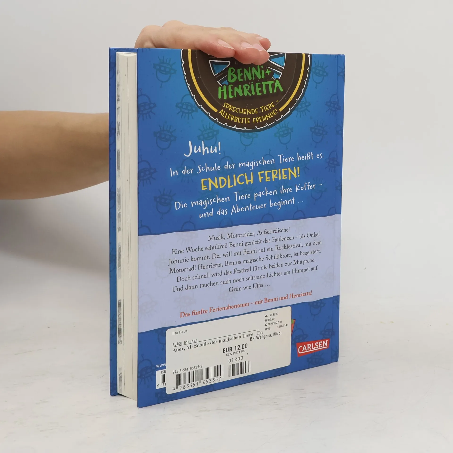 *** Ab in die Ferien – mit einem sprechenden, magischen Tier! *** BAND 5: Eine Woche schulfrei! Benni genießt das Faulenzen – bis Onkel Johnnie kommt. Der will mit Benni auf ein Rockfestival, mit dem Motorrad! Henrietta, Bennis magische Schildkröte, ist begeistert. Doch schnell wird das Festival für die beiden zur Mutprobe. Und dann tauchen auch noch seltsame Lichter am Himmel auf. Grün wie Ufos ... DIE SCHULE DER MAGISCHEN TIERE - ENDLICH FERIEN: In der Schule der magischen Tiere heißt es: Endlich Ferien! Die magischen Tiere packen ihre Koffer – und das Abenteuer beginnt ...