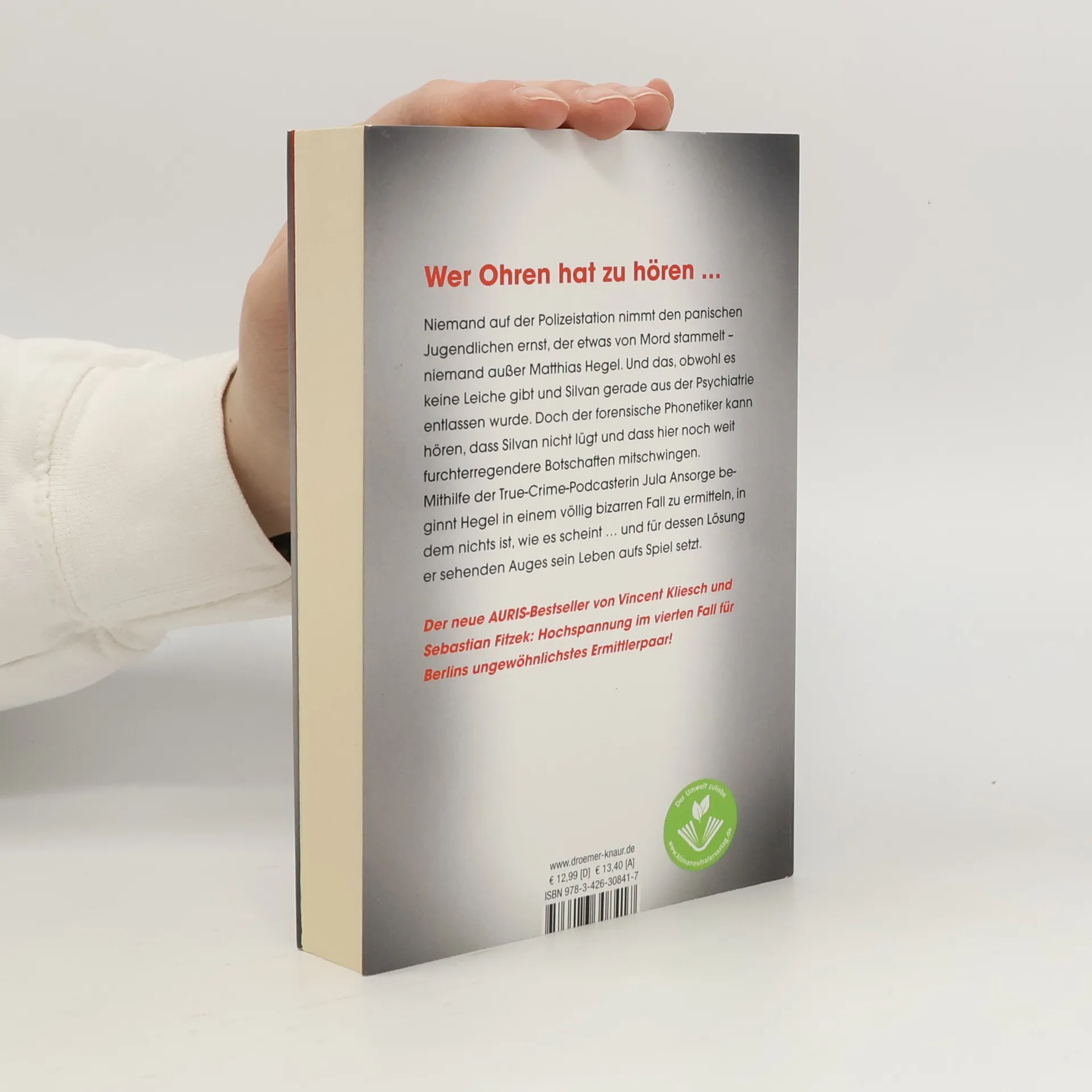 Ehemann – oder Sohn? Wer ist der Mörder von Patrizia Berg? Im 4. Teil der Thriller-Reihe »AURIS« von Vincent Kliesch und Sebastian Fitzek müssen Jula Ansorge und Matthias Hegel eine Wahrheit finden, die nur die Tote selbst zu kennen scheint. Ein markerschütternder Schrei reißt den 15-jährigen SilvanBerg aus der Betrachtung eines Schmetterlings. Silvan rennt los, quer über das herrschaftliche Anwesen seiner Eltern am Kleinen Wannsee in Berlin – und kommt gerade noch rechtzeitig, um seine geliebte Mutter aus einem Fenster im dritten Stock der Villa stürzen zu sehen. Für den Bruchteil einer Sekunde meint er, oben seinen Vater zu erkennen. Niemand auf der Polizeistation nimmt den panischen Jugendlichen ernst, der etwas vom Mord an seiner Mutter stammelt – niemand außer Matthias Hegel. Der forensische Phonetiker kann hören, dass Silvan nicht lügt. Mit Hilfe der engagierten True-Crime-Podcasterin Jula Ansorge beginnt Hegel in einem Fall zu ermitteln, in dem nichts ist, wie es scheint … und für dessen Lösung er sehenden Auges sein Leben aufs Spiel setzt.