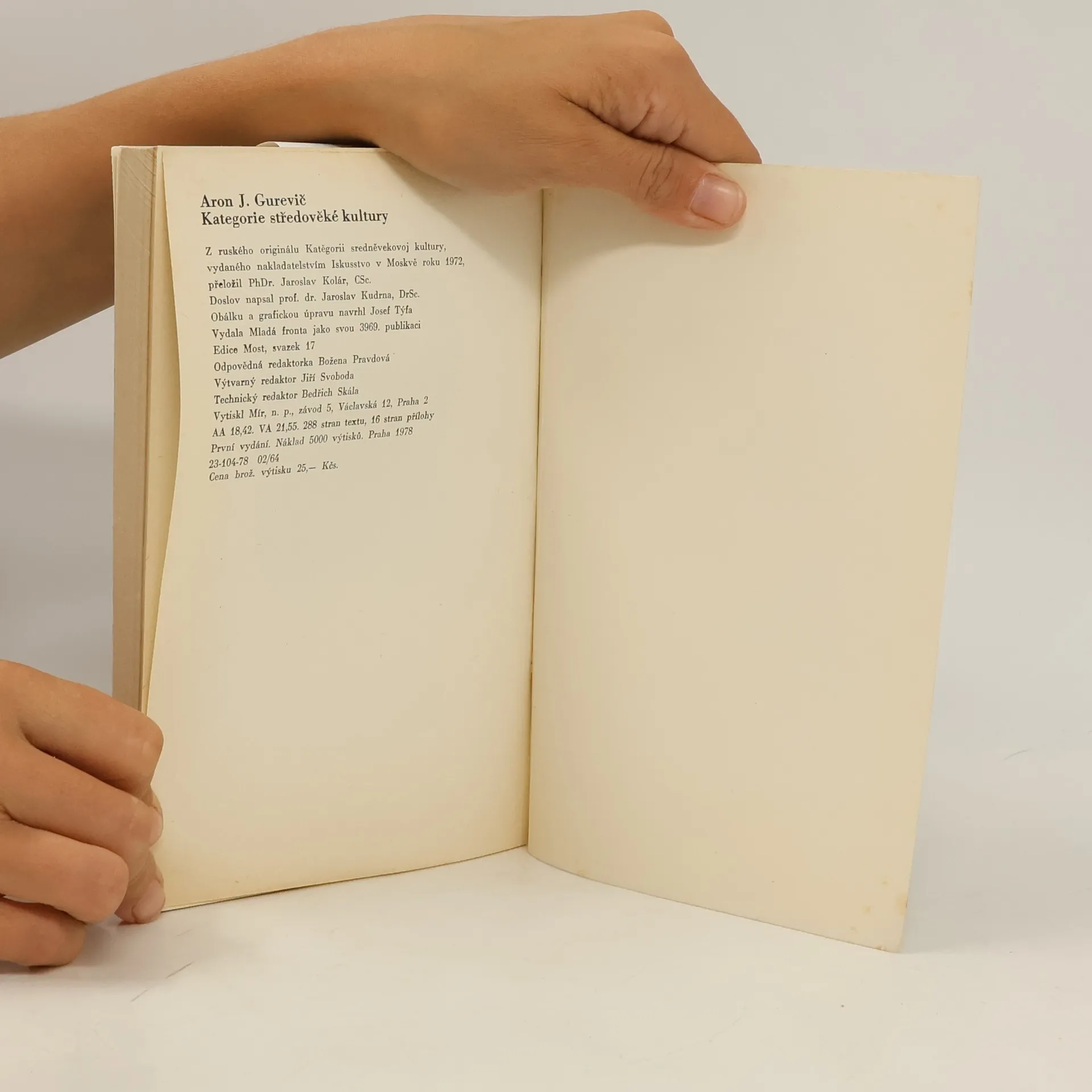Na pozadí širokého historického kontextu autor analyzuje několik kategorií středověké společnosti a kultury (prostor, čas, právo, práce, vlastnictví), vysvětluje jejich vzájemný vztah a specifičnost. Rozborem těchto kategorií, které představují rozmanité dílčí sondy do středověkého světa, chce postihnout celou strukturu středověké kultury a podstatné rysy feudální společnosti. Přeložil, obrazovou přílohu uspořádal a komentoval Jaroslav Kolár. 16 s. obr. příl. : il., faksim.