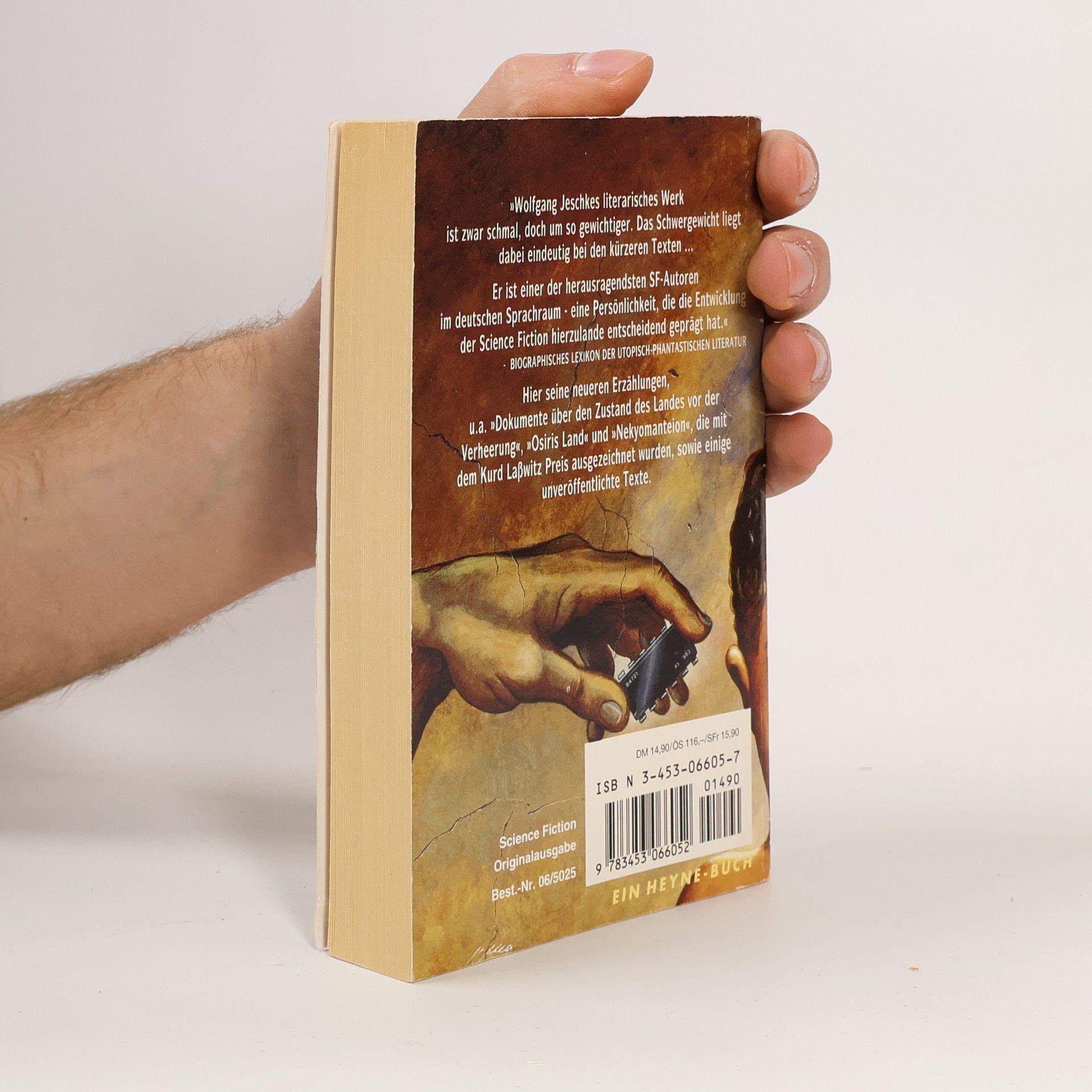 »Wolfgang Jeschkes literarisches Werk ist zwar schmal, doch um so gewichtiger. Das Schwergewicht liegt dabei eindeutig bei den kürzeren Texten...Er ist einer der herausragendsten SF-Autoren im deutschen Sprachraum - eine Persönlichkeit, die die Entwicklung der Science Fiction hierzulande entscheidend geprägt hat.«BIOGRAPHISCHES LEXIKON DER UTOPISCH-PHANTASTISCHEN LITERATURHier seine neueren Erzählungen, u.a. »Dokumente über den Zustand des Landes vor derVerheerung«, »Osiris Land« und »Nekyomanteion«, die mit dem Kurd Lawitz Preis ausgezeichnet wurden, sowie einige unveröffentlichte Texte.
