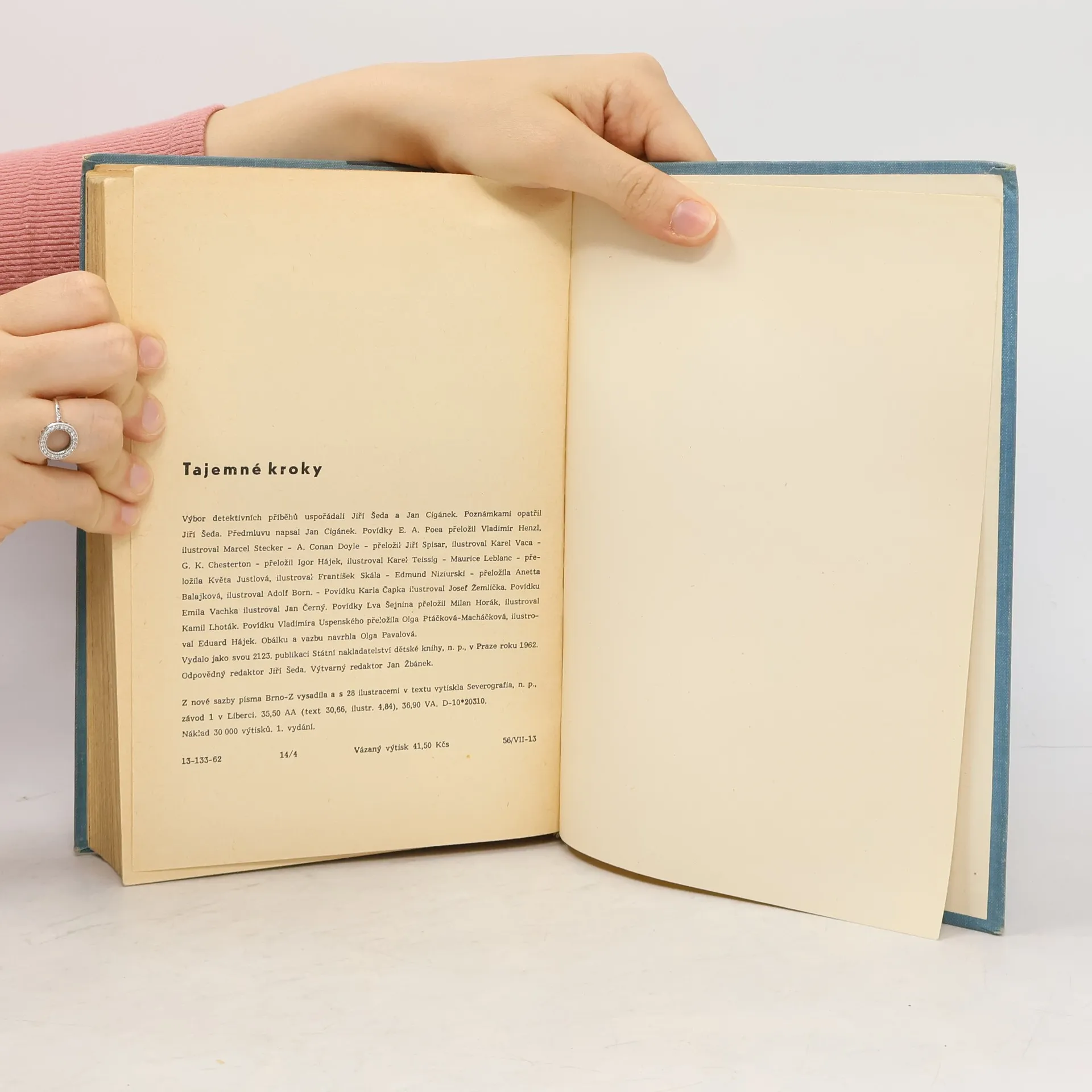 Tajemné kroky... tak je nazván obsáhlý výbor detektivních povídek, v němž jistě najde každý obdivovatel tohoto žánru aspoň drobet ze svých oblíbených autorů, od E. A. Poea přes Maurice Leblanca, Sira Arthura C. Doyla až po našeho Emila Vachka (který zvlášť pro tento výbor napsal docela novou detektivku a dal ji název Nefrita) a polské a sovětské detektivkáře Niziurského, Uspenského i Lva Šejnina. Setkáme se tu se slavným Sherlockem Holmesem, Arsénem Lupinem, s českým detektivem, nestárnoucím Klubíčkem a ještě s mnoha dalšími. A srovnáte-li třeba Sherlocka Holmese se Suliborem či Šejninovými obránci spravedlnosti, pocítíte jak se „slídilské řemeslo“ mění ze zábavnosti v odpovědný boj proti násilí, zločinu a svévoli. Každý z nás má v sobě svého Dona Quijota, nějaké krásné přání, pro které chce jít do boje. Svůj sen. I v naší knize najdete takové vysněné hrdiny. Přicházejí ke klukům i k mužům a my nasloucháme jejich příběhům, i když víme, že nejsou vždy skutečné. Přečteme si je a zdá se nám, že spravedlnost musí zvítězit, že člověk je silný, protože myslí, že jej nelze porazit, protože je vytrvalý a umí jít za svou myšlenkou. Pak se nám zdá, jako by všechny ty postavy našich příběhů – mistrovský Dupin, vychloubačný Sherlock Holmes, žertéřský Klubíčko, Sulibor i ten neštastný Čapkův Pištora – šli někdy s námi.