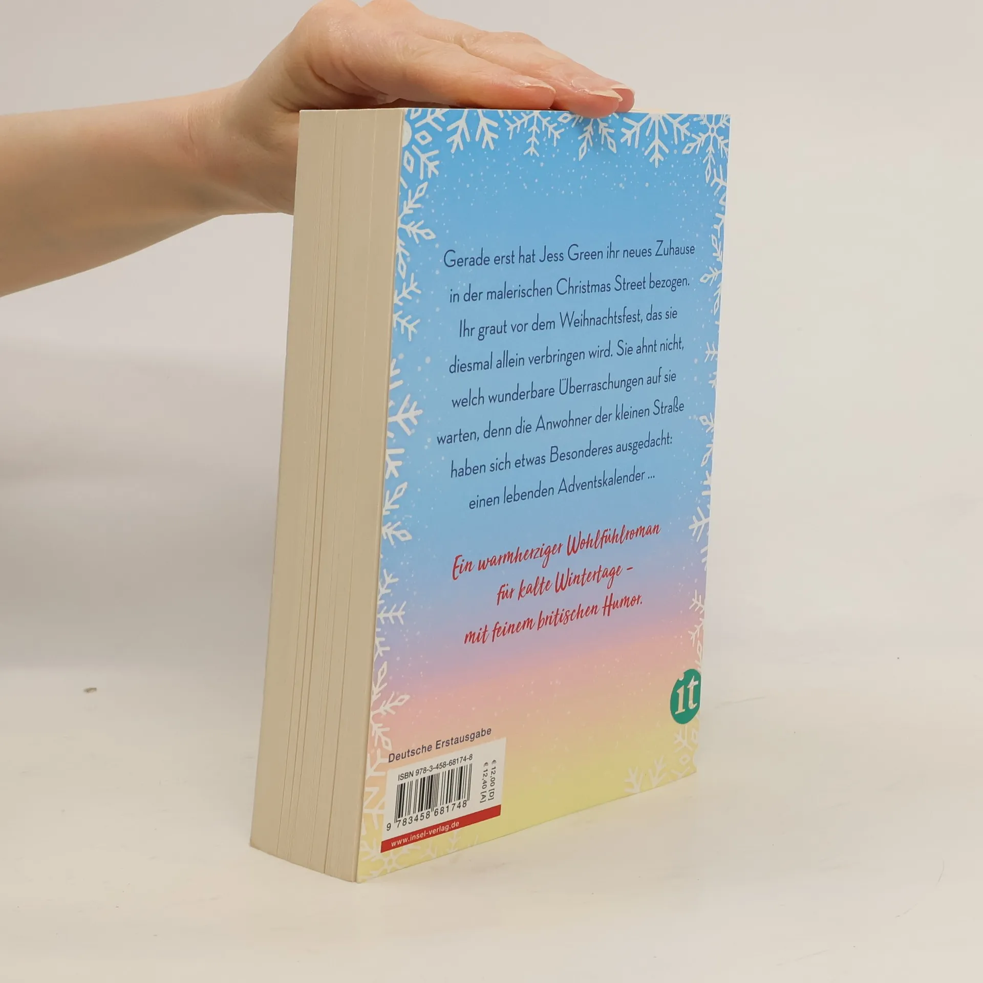 Ein warmherziger Feelgood-Roman für kalte Wintertage – mit feinem britischen Humor Gerade erst hat Jess Green ihr neues Zuhause in der malerischen Christmas Street bezogen. Es ist Anfang Dezember, und die Anwohner der kleinen Straße haben sich in diesem Jahr etwas Besonderes ausgedacht: einen lebendigen Adventskalender. Jeden Tag öffnet ein anderes Haus seine Türen und hält eine Überraschung für die Nachbarn bereit: Bei Glühwein und Gebäck werden Lebkuchenhäuser und Blumengestecke gebastelt, es gibt kleine Weihnachtskonzerte und Stegreiftheater, Spielzeugautorennen und Schneeballschlachten … So kommen alle zusammen und vergessen für einige Stunden ihre ganz unterschiedlichen kleinen und größeren Sorgen. Schade nur, dass ausgerechnet der griesgrämige Mr Winter aus Haus Nr. 24 sich all dem verschließt. Doch er hat nicht mit Jess’ Charmeoffensive gerechnet, genausowenig wie sein ihm bis dahin unbekannter Neffe, der wie aus dem Nichts auftaucht ...