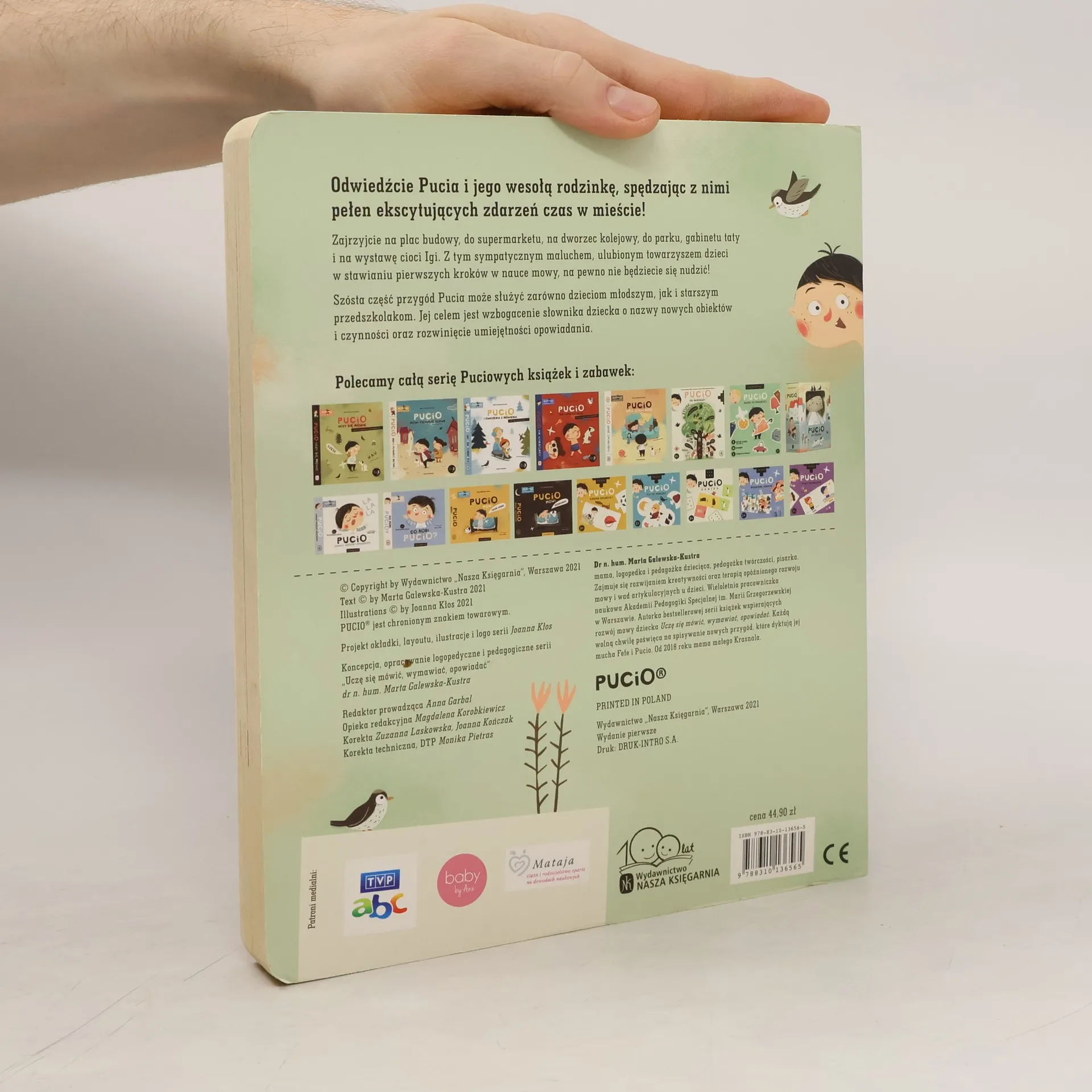 Odwiedźcie Pucia i jego wesołą rodzinkę, spędzając z nimi pełen ekscytujących zdarzeń czas w mieście! Zajrzyjcie na plac budowy, do supermarketu, na dworzec kolejowy, do parku, gabinetu taty i na wystawę cioci Igi. Z tym sympatycznym maluchem, ulubionym towarzyszem dzieci w stawianiu pierwszych kroków w nauce mowy, na pewno nie będziecie się nudzić!Szósta część przygód Pucia może służyć zarówno dzieciom młodszym, jak i starszym przedszkolakom. Jej celem jest wzbogacenie słownika dziecka o nazwy nowych obiektów i czynności oraz rozwinięcie umiejętności opowiadania.