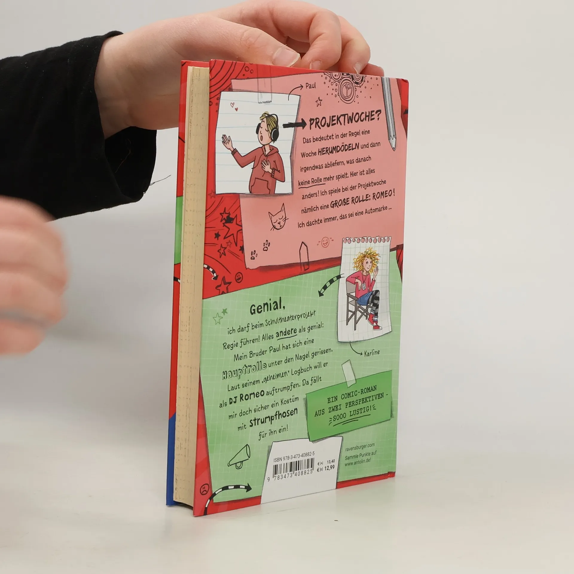 Mit Paul zusammen im Schultheaterprojekt?! Karline total genervt! Es bleibt ihr gar nichts anderes übrig, als sein Tagebuch zu lesen – als Selbstschutzmaßnahme! Voll cool! Karline darf beim Schultheaterprojekt Regie führen! Voll uncool: Ihr Bruder Paul hat sich die Rolle des Romeo unter den Nagel gerissen. So will er seiner Angebeteten Roberta näherkommen, die die Julia spielt. Dafür pimpt er seine Rolle eigenmächtig auf, und aus Romeo wird der coole DJ Romeo. Praktischer Nebeneffekt: Faulpaul muss nicht mal mehr Text lernen, sondern kann ihn sich über Kopfhörer soufflieren lassen. Karline sinnt auf Rache und ein Drama nimmt seinen Lauf … Entdecke alle ungeheimen Tagebücher: Band 1: Wie mein bescheuerter Bruder Klassensprecher in meiner Klasse wurde … Band 2: Wie mein peinlicher Bruder sich auf meine Party eingeladen hat … Band 3: Wie mein nerviger Bruder mit auf meine Klassenfahrt kam … Band 4: Wie mein blöder Bruder die Hauptrolle in meinem Theaterstück spielte ... Band 5: Wie mein durchgeknallter Bruder meine Klassenlehrerin verschwinden ließ ...