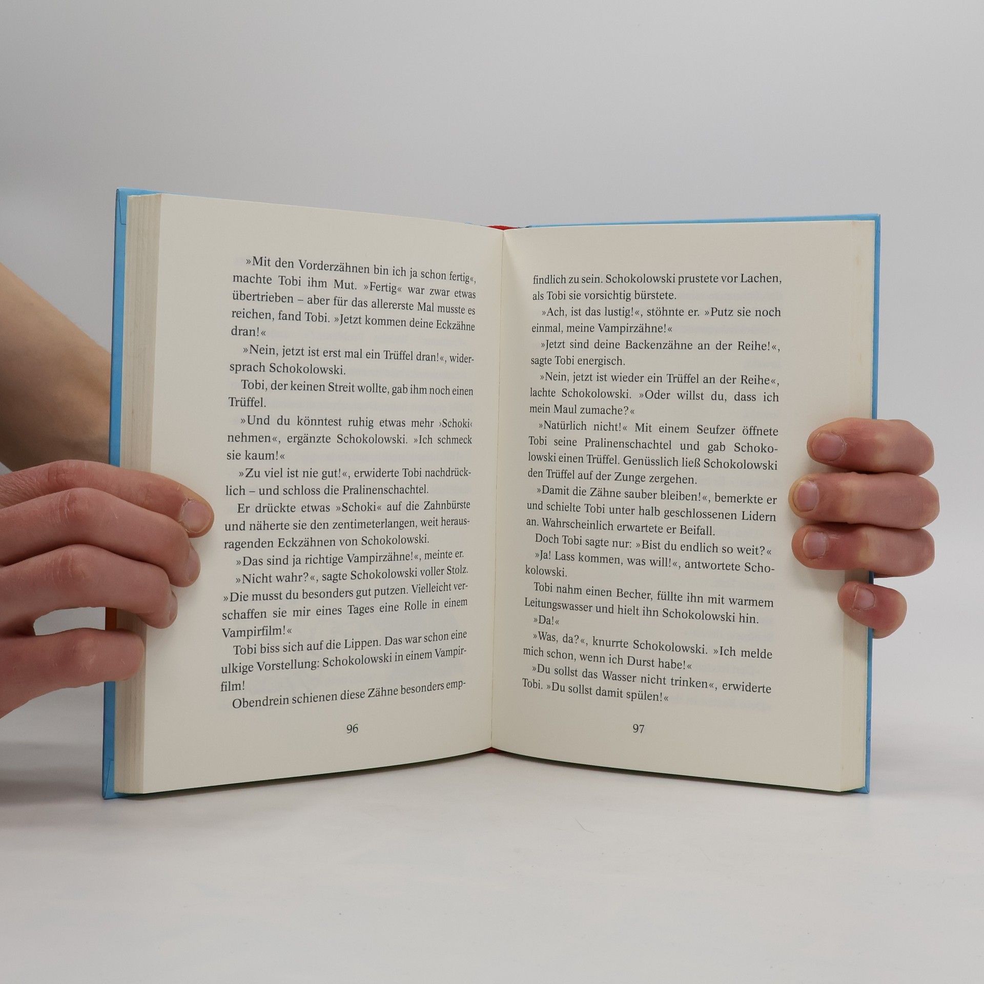 Schokolowski - der sprechende Bernhardiner. Band 2 Tobi ist überglücklich. Wer hat schon einen sprechenden Hund! Wenn Schokolowski nur nicht dauernd Schokoladentrüffel fressen würde! Die sind überhaupt nicht gut für Hundezähne. Da gibt es nur eines: Schokolowski müssen die Zähne geputzt werden. Gar nicht so einfach bei einem riesigen Bernhardiner, der schrecklich kitzelig ist. Ab 8 Jahren