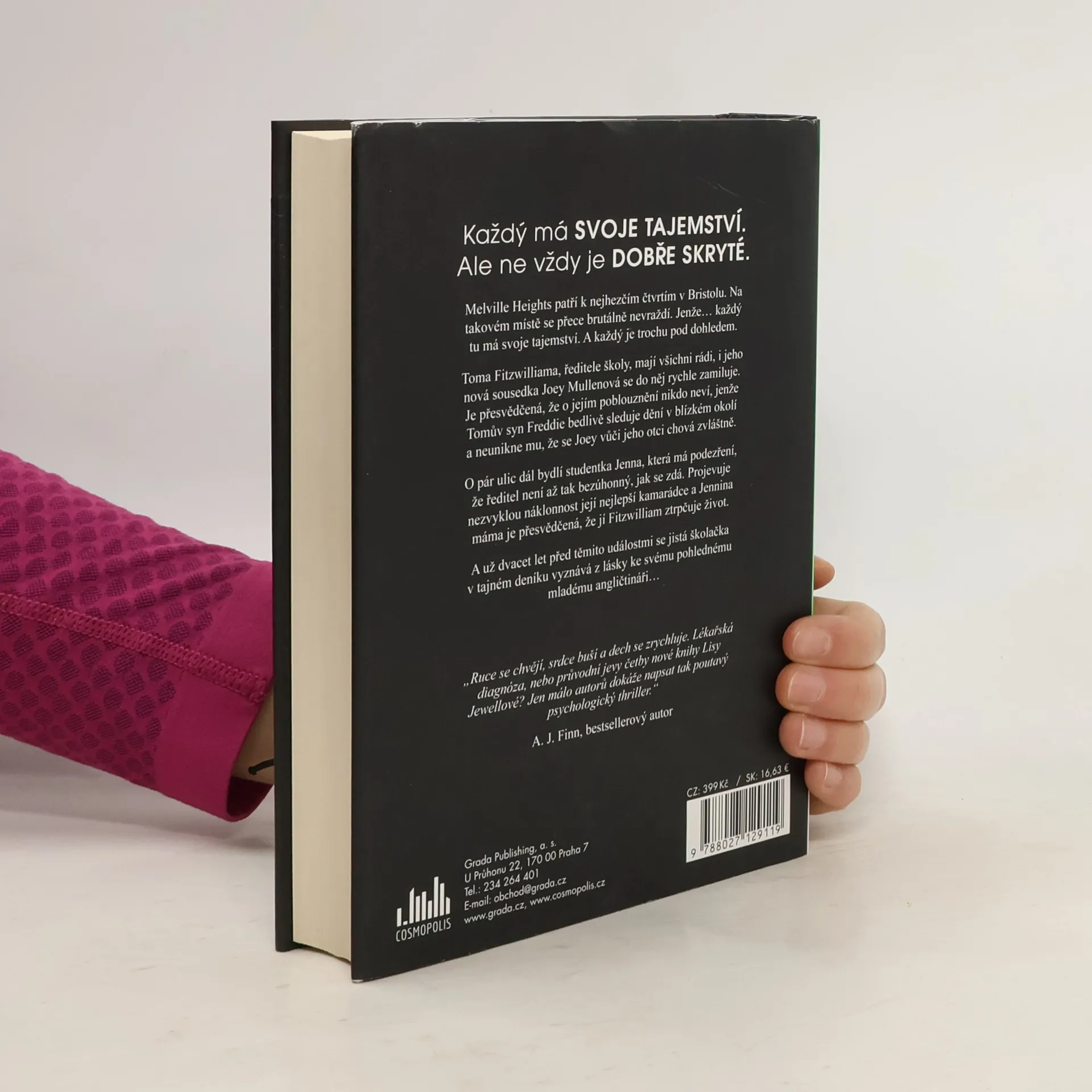 Každý má svoje tajemství. Ale ne vždy je dobře skryté. Melville Heights patří k nejhezčím čtvrtím v Bristolu. Na takovém místě se přece brutálně nevraždí. Jenže… každý tu má svoje tajemství. A každý je trochu pod dohledem. Toma Fitzwiliama, ředitele školy, mají všichni rádi, i jeho nová sousedka Joey Mullenová se do něj rychle zamiluje. Je přesvědčená, že o jejím poblouznění nikdo neví, jenže Tomův syn Freddie bedlivě sleduje dění v blízkém okolí a neunikne mu, že se Joey vůči jeho otci chová zvláštně. O pár ulic dál bydlí studentka Jenna, která má podezření, že ředitel není až tak bezúhonný, jak se zdá. Projevuje nezvyklou náklonnost její nejlepší kamarádce a Jennina máma je přesvědčená, že jí Fitzwilliam ztrpčuje život. A už dvacet let před těmito událostmi se jistá školačka v tajném deníku vyznává z lásky ke svému pohlednému mladému angličtináři…