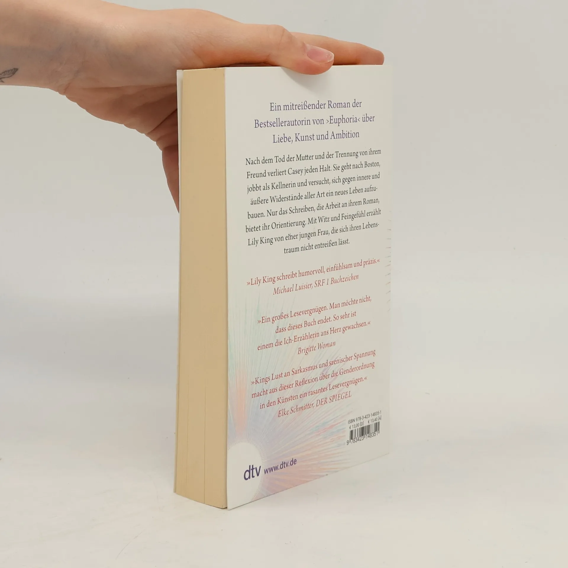 »... einfühlsam und präzis.« Michael Luisier in ›SRF 1 BuchZeichen‹ Als ihre Mutter plötzlich stirbt und Luke sie aus heiterem Himmel verlässt, verliert Casey den Boden unter den Füßen. Ohne wirklichen Plan landet sie mit einem Schuldenberg aus dem Studium in Massachusetts, wo sie beginnt, als Kellnerin zu arbeiten. Bei ihren Versuchen, sich aus einem Netz von Abhängigkeiten zu befreien, gerät sie immer wieder in Situationen mit Männern, die ihre Macht gegen sie ausspielen. Die einzige Konstante in ihrem Leben bleibt das Schreiben: Der Roman, an dem sie seit sechs Jahren arbeitet, wird ihr Fluchtort, ihr Schutzraum. Aber ist sie mit 31 Jahren nicht zu alt, um sich an den losen Traum eines Lebens als Schriftstellerin zu klammern? Ihre Entscheidung für das richtige Leben ist auch eine Entscheidung zwischen zwei Männern. Nach dem gefeierten Bestseller ›Euphoria‹ erzählt Lily King in ›Writers & Lovers‹ treffsicher, intelligent und mit ureigenem Humor die Geschichte einer ebenso starken wie zerbrechlichen jungen Frau – und von der Zerrissenheit zwischen den Zwängen der Gesellschaft und den eigenen Träumen von einem anderen Leben.