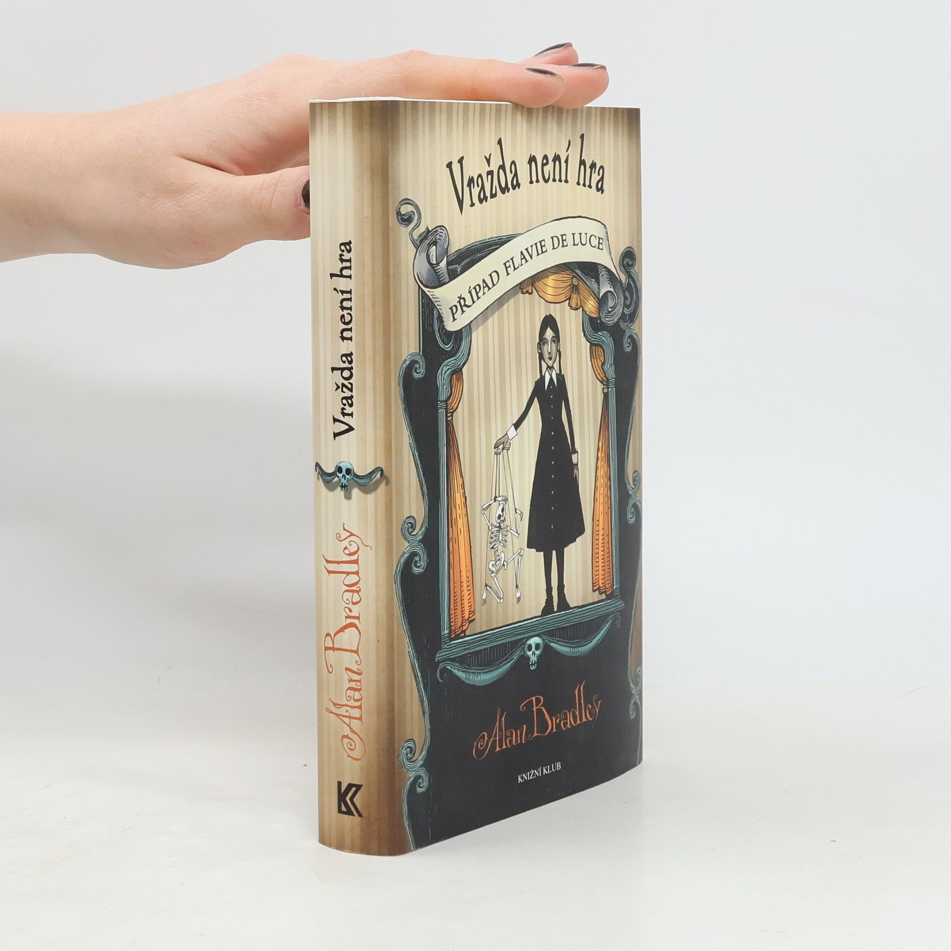 Jedenáctiletou Flavii de Luce, hrdinku originálních, vtipných a napínavých románů, nudí život s otcem a nemilovanými sestrami na venkovském sídle. O to víc ji od malička fascinují chemie, jedy a smrt. Na začátku svého nového detektivního vyprávění leží mrtvá na hřbitově v Bishop's Lacey. Zvědavá kavka ale odhalí, že svůj stav jen předstírá, a vzápětí už táto odvážná, inteligentní a často pronikavě ironická dívka vstupuje do dalšího příběhu, ve kterém samozřejmě dojde i na vraždu...Na místním hřbitově se náhodně setká s plačící dívkou jménem Nialla, asistentkou slavného loutkoherce Ruperta Porsona. Ve vesnici oba uvízli kvůli porouchanému autu a místní vikář je přemluví, aby uspořádali představení. Malá Flavia loutkohercům pomáhá, a jak už to tak u ní bývá, zároveň si dává dvě a dvě dohromady. Záhy je jí například jasné, že to mezi Rupertem a Niallou tak úplne neklape, a že oba dva něco tají. Schyluje se k inscenaci pohádky Jakub a fazole. Ale také k zločinu. A z minulosti se vynoří jedna místní tragédie... První vydání