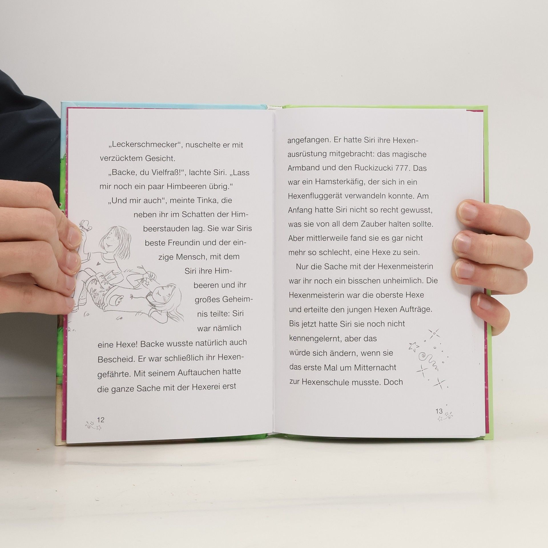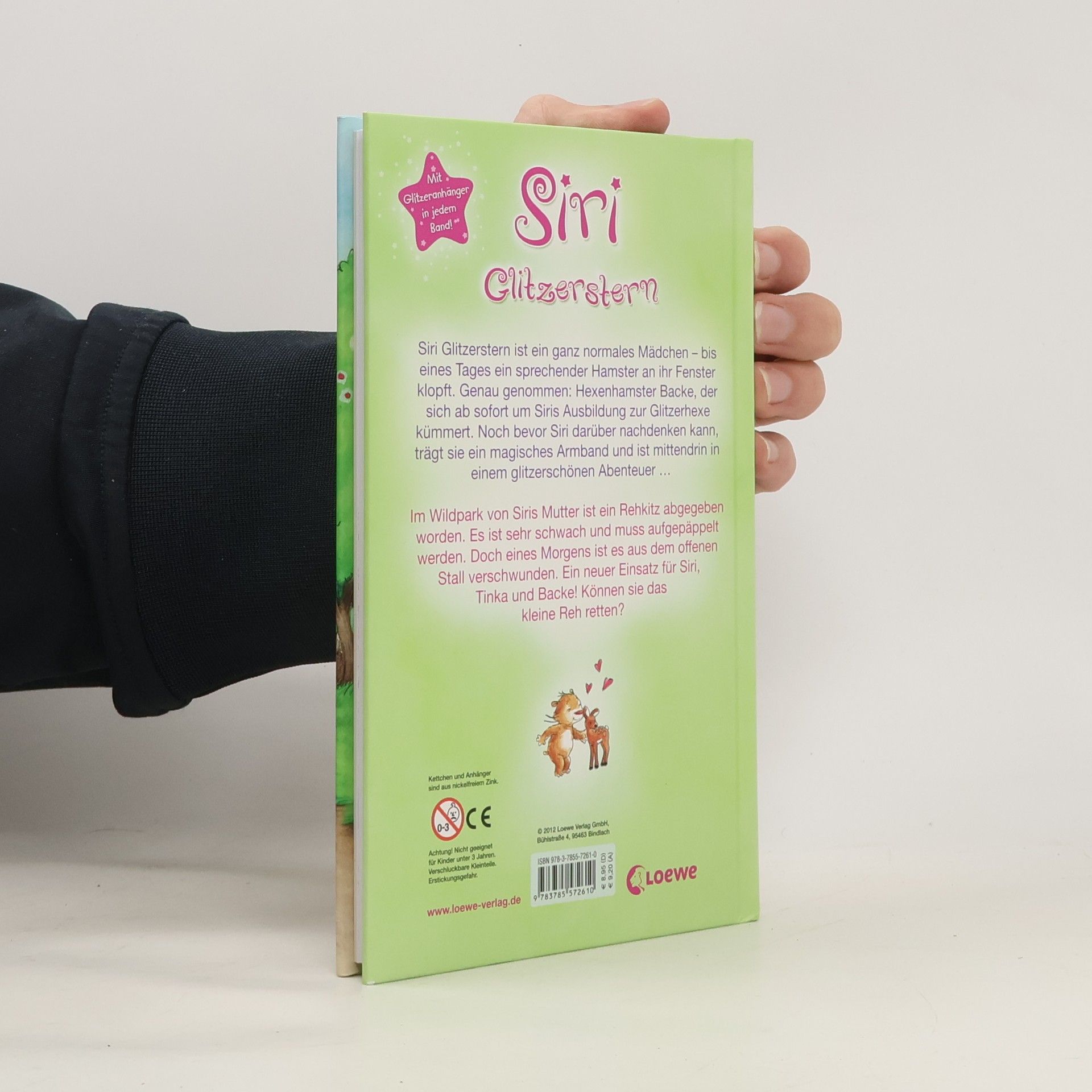 Siri Glitzerstern ist ein ganz normales Mädchen – bis eines Tages ein sprechender Hamster an ihr Fenster klopft. Genau genommen: Hexenhamster Backe, der sich ab sofort um Siris Ausbildung zur Glitzerhexe kümmert. Noch bevor Siri darüber nachdenken kann, trägt sie ein magisches Armband und ist mittendrin in einem glitzerschönen Abenteuer … Im Wildpark von Siris Mutter ist ein Rehkitz abgegeben worden. Es ist sehr schwach und muss aufgepäppelt werden. Doch eines Morgens ist es aus dem offenen Stall verschwunden. Ein neuer Einsatz für Siri, Tinka und Backe! Mit viel rosa Glitzerzauber machen sie sich auf die Suche. Können sie das kleine Reh retten? Mit Glitzeranhänger in jedem Band!