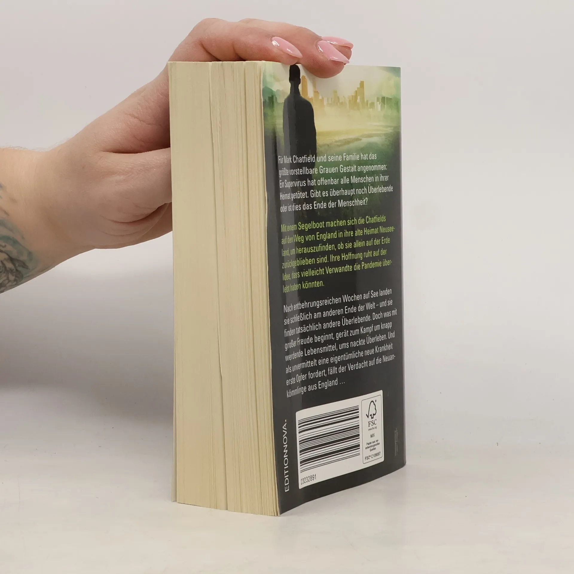 Die Welt, wie wir sie kennen, existiert nicht mehr. Ein Supervirus hat beinahe die gesamte Menschheit ausgelöscht. Mark Chatfield und seine Familie sind immun gegen die Krankheit. Auf der Suche nach anderen Überlebenden segeln sie nach Australien. Was sie dort erwartet, übersteigt den bisherigen Schrecken: Denn offenbar war die globale Pandemie kein Zufall. Mark könnte selbst dafür verantwortlich sein.