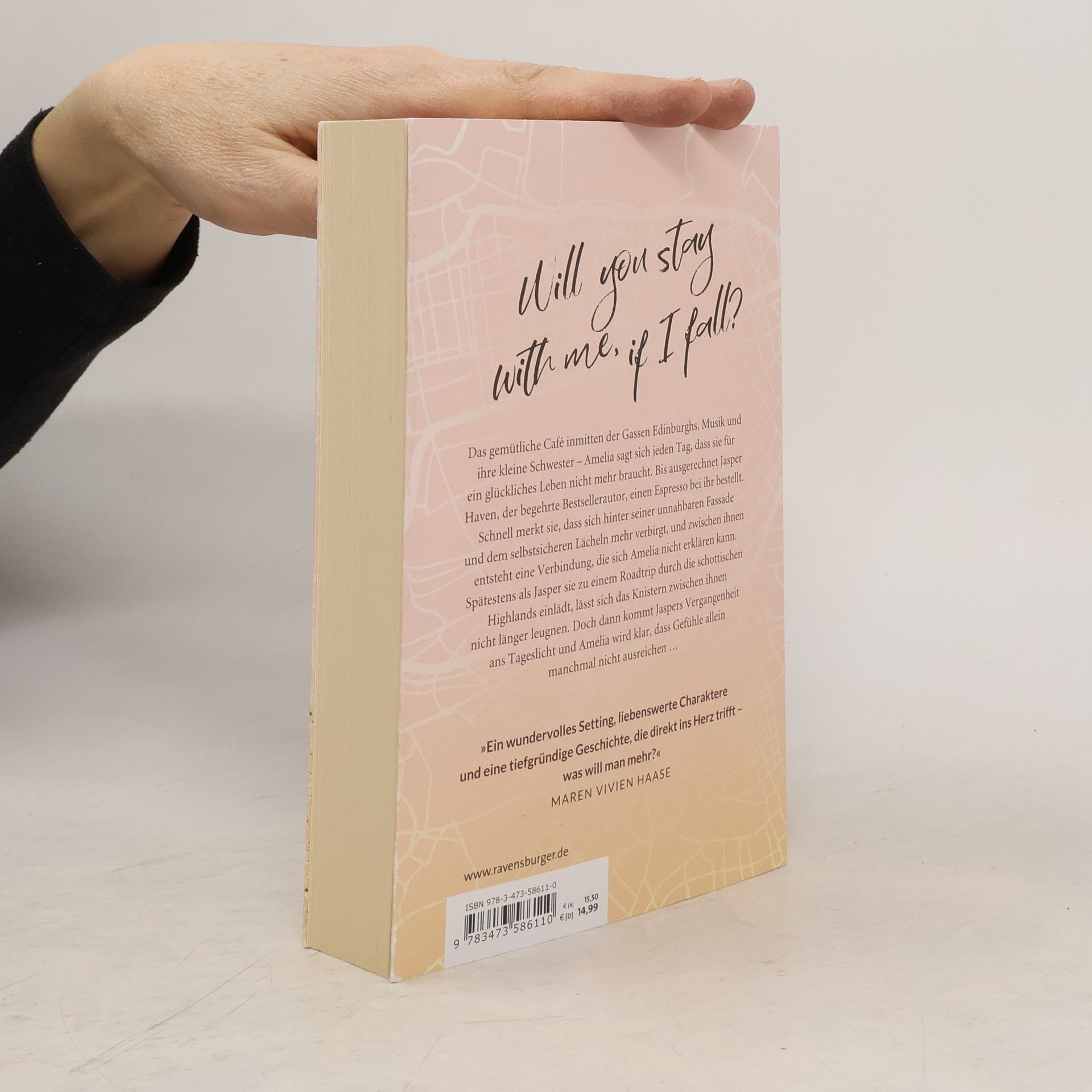 Will you stay with me, if I fall?Das gemütliche Café inmitten der Gassen Edinburghs und ihre Schwester - Amelia sagt sich jeden Tag, dass sie für ein glückliches Leben nicht mehr braucht. Bis ausgerechnet der Bestsellerautor Jasper Haven einen Espresso bei ihr bestellt. Schnell merkt sie, dass sich hinter seiner unnahbaren Fassade mehr verbirgt. Spätestens bei einem gemeinsamen Roadtrip durch die schottischen Highlands lässt sich das Knistern zwischen ihnen nicht länger leugnen. Doch dann kommt Jaspers Vergangenheit ans Licht …