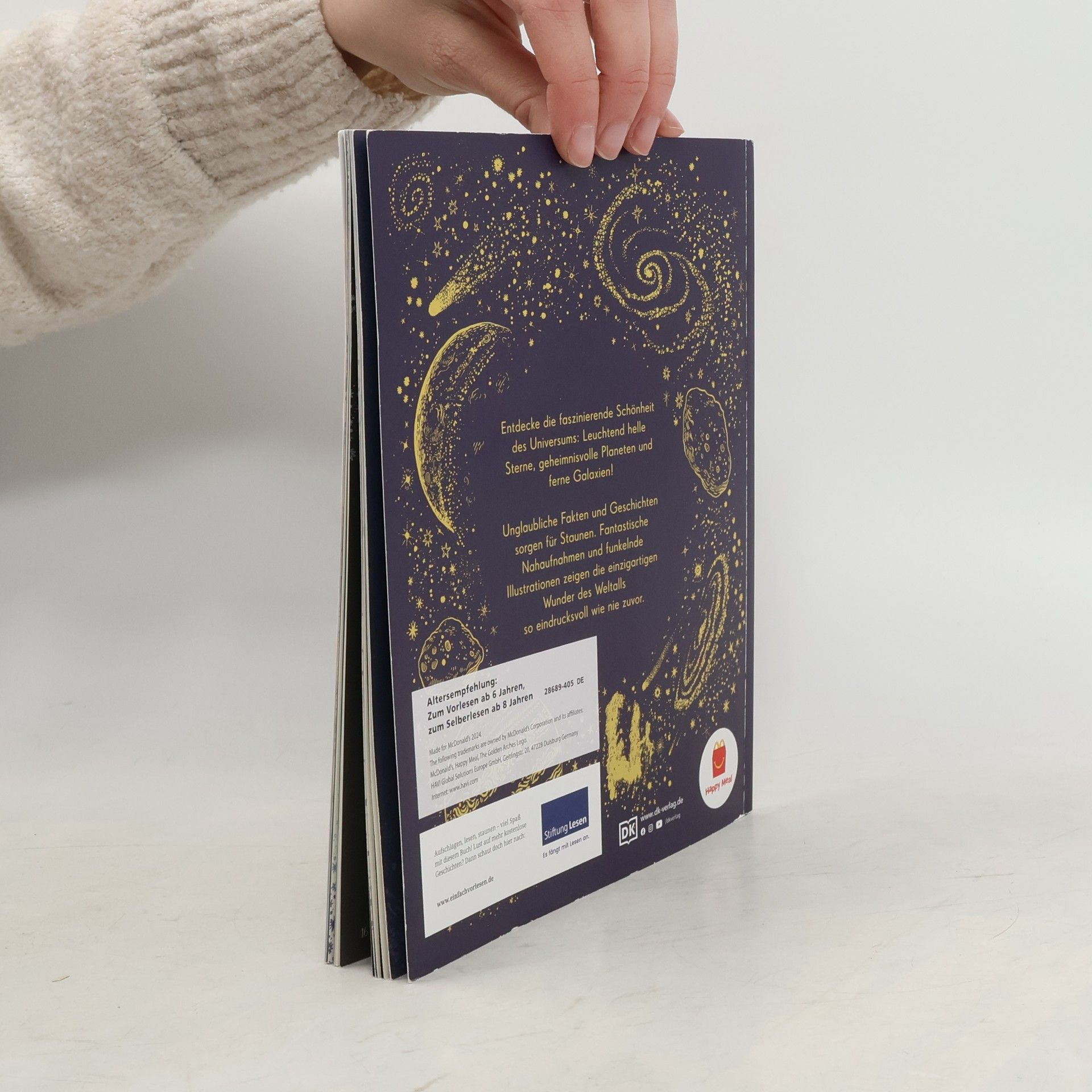 Wunderschönes Weltraumlexikon für die ganze Familie Ob leuchtend helle Sterne oder Staubstürme auf dem Mars – dieses stimmungsvolle Astronomiebuch zeigt über 100 der erstaunlichsten Wunder des Kosmos auf zauberhafte Weise! Beeindruckende Fotografien, Illustrationen und spannende Texte entführen junge Leser*innen in die fantastischen Weiten des Weltalls . Das Sachbilderbuch wird dank Lesebändchen, Goldschnitt und Goldfolie auf dem Cover zum perfekten Geschenk zum Vorlesen und Schmökern für die ganze Familie. Eine atemberaubende Reise durch den Weltraum: - Über 100 Einblicke in das Weltall für Kinder – von unserem Heimatplaneten Erde aus geht es am Mond vorbei zu den Planeten des Sonnensystems bis zum Kuipergürtel und seinen Himmelskörpern. Im interstellaren Raum fliegt man weiter zu leuchtenden Sternen, bunten Nebeln und fernen Galaxien. - Lesenswerte Texte offenbaren Besonderheiten und spannende Fakten wie zum Beispiel, dass jeder Mensch in seinem Körper Elemente hat, die aus einer Sternenexplosion stammen. - Beeindruckende visuelle Gestaltung : fantastische Nahaufnahmen, emotionale Fotografien und stimmungsvolle Illustrationen zeigen beispielsweise Fußspuren auf dem Mond, die eisigen Ringe Saturns oder die pulsierenden Überreste einer Supernova. - Prachtvolle Ausstattung