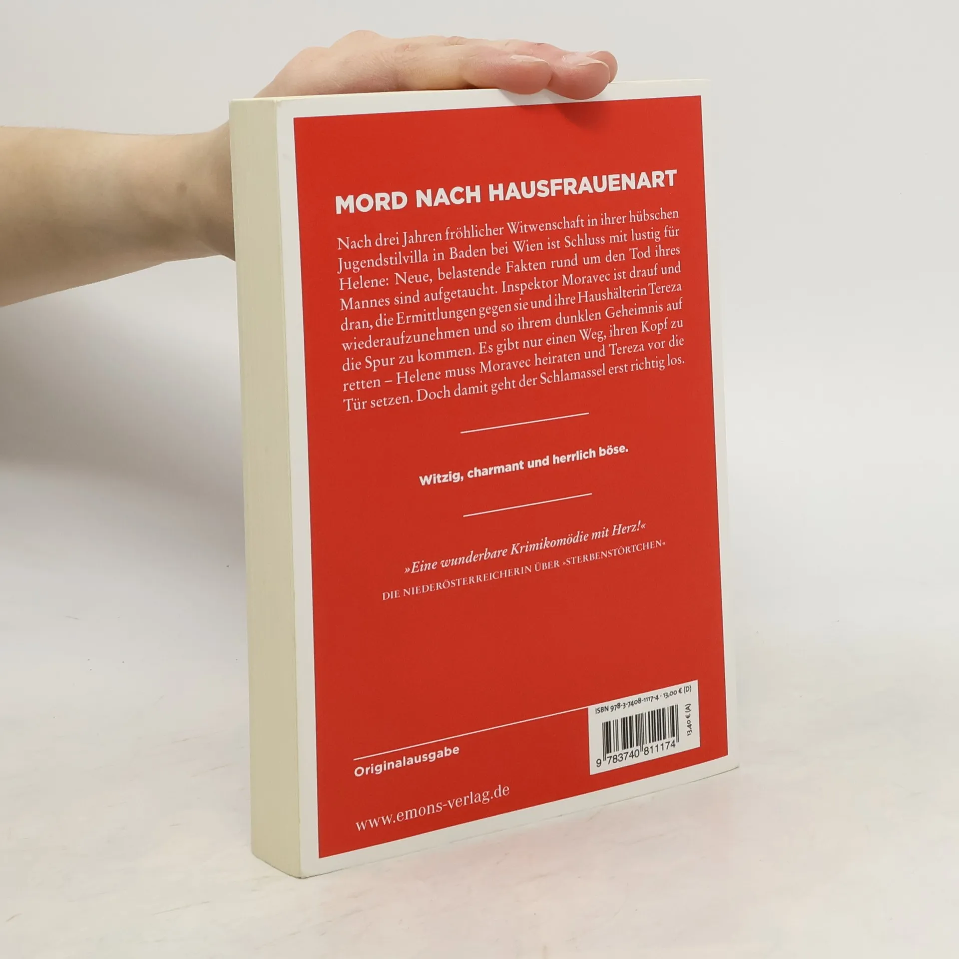Eine bitterböse Krimifarce mit viel weiblichem Charme und irrwitzigen Wendungen. Nach drei Jahren fröhlicher Witwenschaft in ihrer hübschen Jugendstilvilla in Baden bei Wien ist Schluss mit lustig für Helene: Neue, belastende Fakten rund um den Tod ihres Mannes sind aufgetaucht. Inspektor Moravec ist drauf und dran, die Ermittlungen gegen sie und ihre Haushälterin Tereza wiederaufzunehmen und so ihrem dunklen Geheimnis auf die Spur zu kommen. Es gibt nur einen Weg, ihren Kopf zu retten – Helene muss Moravec heiraten und Tereza vor die Tür setzen. Doch damit geht der Schlamassel erst richtig los.