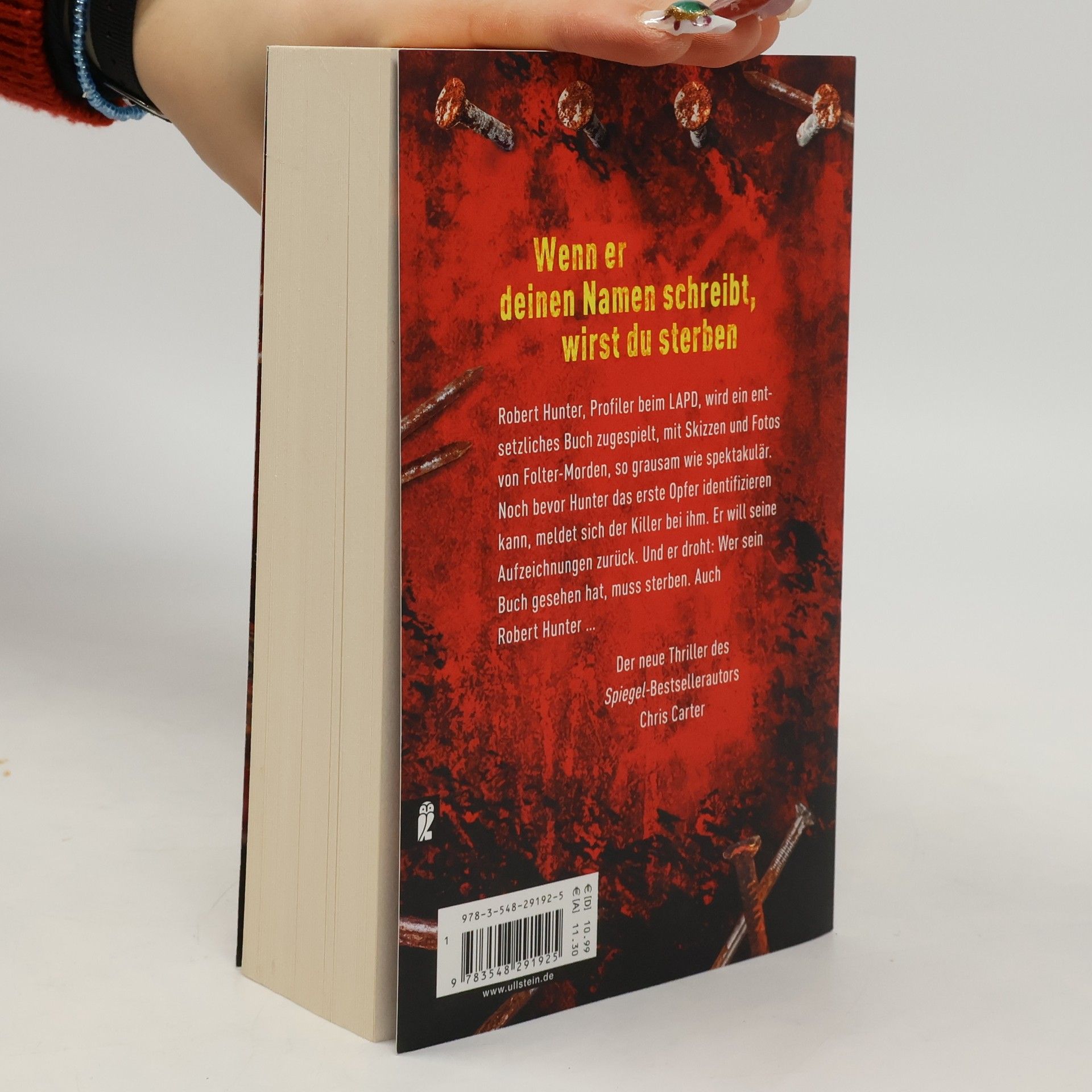 Der neue Thriller von Nr.-1-Bestsellerautor Chris Carter Taschendiebin Angela Wood hatte einen guten Tag. Sie gönnt sich einen Cocktail, als ihr in der Bar ein Gast auffällt, der sich rüpelhaft benimmt. Um ihm eine Lektion zu erteilen, stiehlt sie seine teure Ledertasche. Ein schwerer Fehler, die Tasche enthält nichts Wertvolles, nur ein kleines Notizbuch. Ein Albtraum beginnt. Das Buch enthält Skizzen und Fotos von 16 Folter-Morden. 16 Polaroids der Opfer, 16 DNA-Analysen. In Panik schickt Angela das Buch an das LAPD, wo Robert Hunter und Carlos Garcia sofort erkennen, dass der sadistische Täter ein Experte sein muss. Das ist ihr einziger Hinweis. Eine blinde Jagd beginnt, bis der Killer Hunter ein Ultimatum stellt. Der 11. Fall Robert Hunter und seinem Partner Garcia.