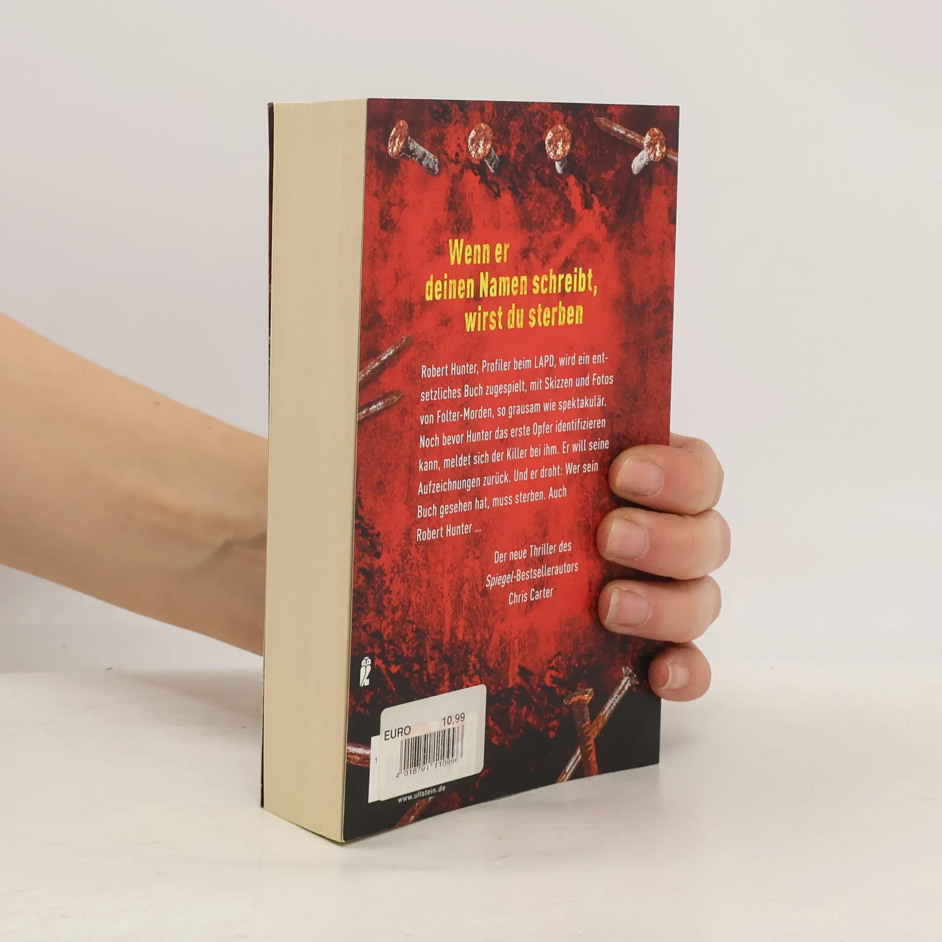 Der neue Thriller von Nr.-1-Bestsellerautor Chris Carter Taschendiebin Angela Wood hatte einen guten Tag. Sie gönnt sich einen Cocktail, als ihr in der Bar ein Gast auffällt, der sich rüpelhaft benimmt. Um ihm eine Lektion zu erteilen, stiehlt sie seine teure Ledertasche. Ein schwerer Fehler, die Tasche enthält nichts Wertvolles, nur ein kleines Notizbuch. Ein Albtraum beginnt. Das Buch enthält Skizzen und Fotos von 16 Folter-Morden. 16 Polaroids der Opfer, 16 DNA-Analysen. In Panik schickt Angela das Buch an das LAPD, wo Robert Hunter und Carlos Garcia sofort erkennen, dass der sadistische Täter ein Experte sein muss. Das ist ihr einziger Hinweis. Eine blinde Jagd beginnt, bis der Killer Hunter ein Ultimatum stellt. Der 11. Fall Robert Hunter und seinem Partner Garcia.