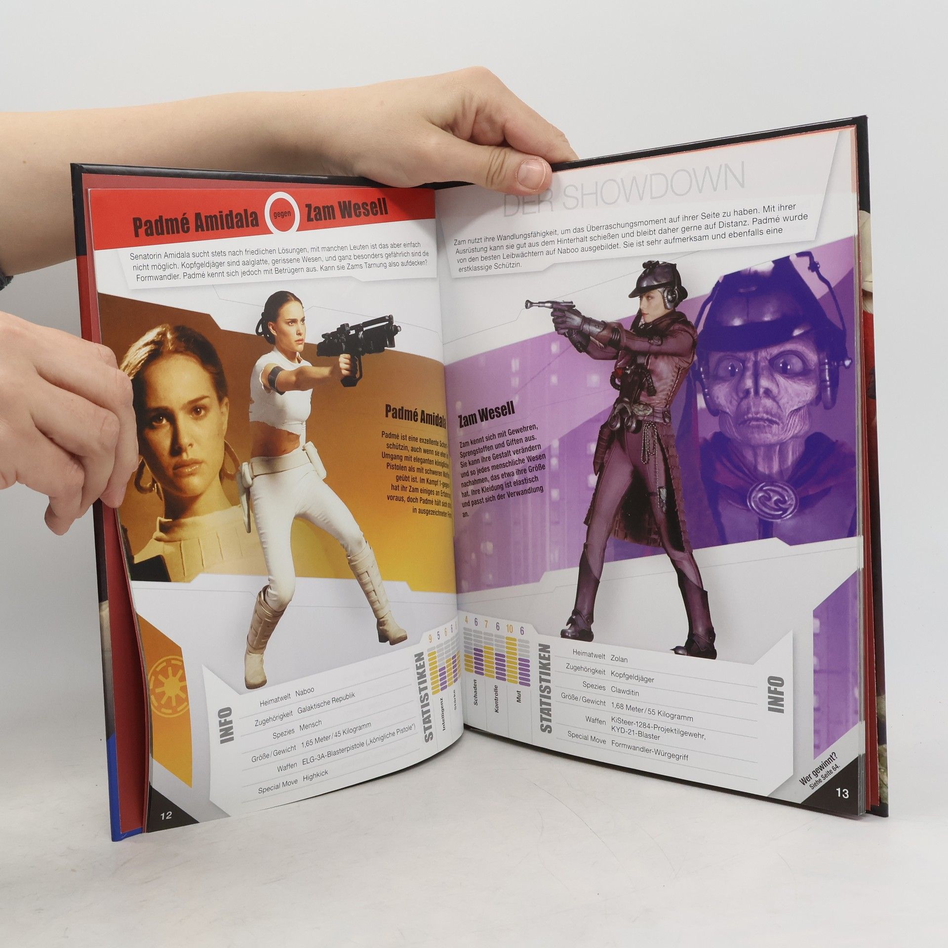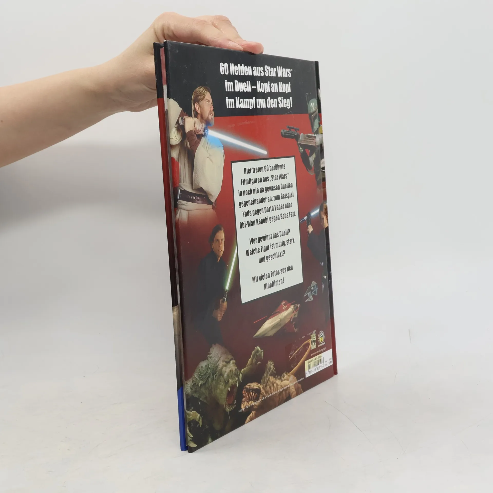 Foto-Filmbuch mit fiktiven Duellen von grössenteils jeweils einem Gegner der Jedi- (guten) und Sith- (schlechten) Seite, die Duelle haben so jedoch nicht stattgefunden. Wer würde anhand seiner Fähigkeiten als Sieger hervorgehen? Ab 10.