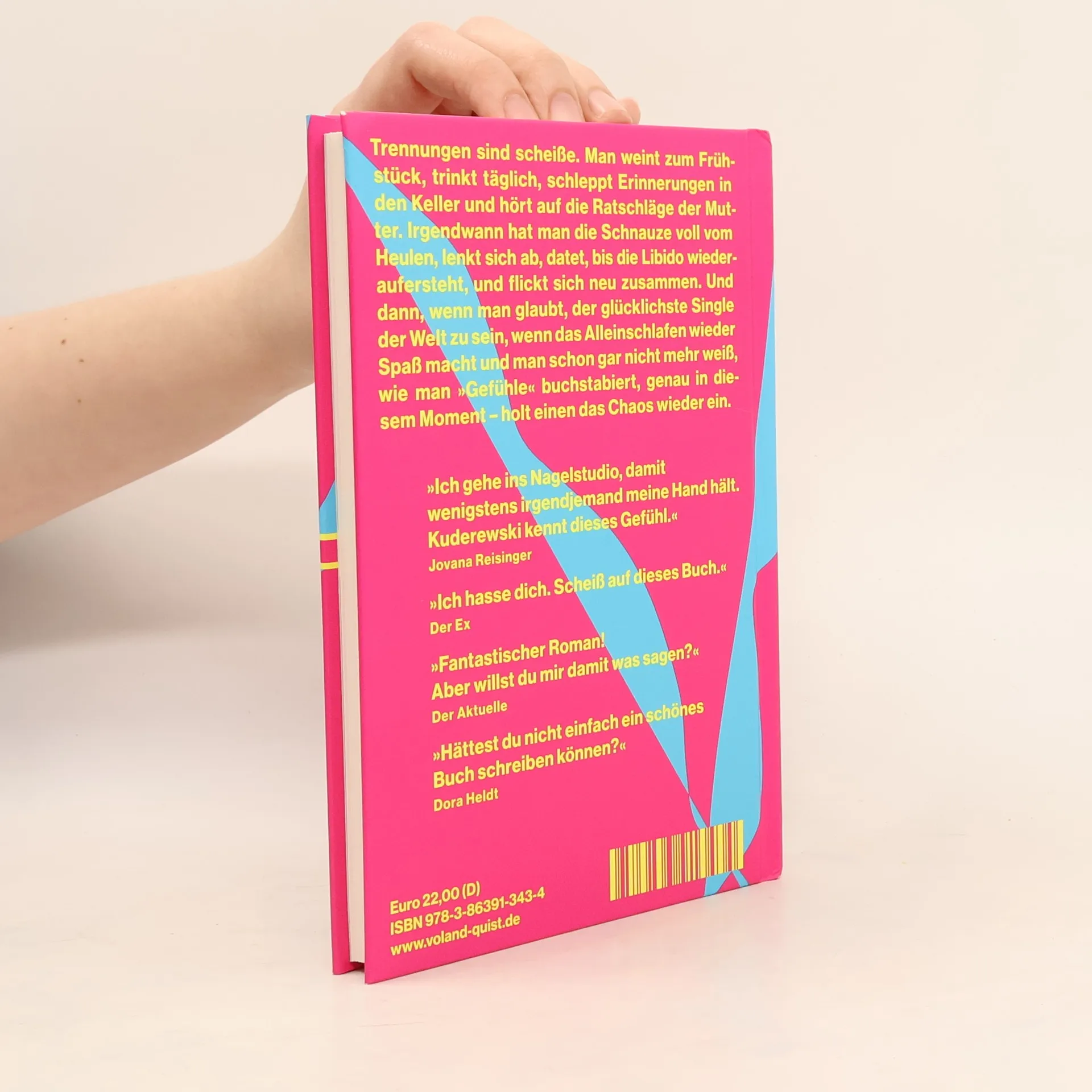 Trennungen sind scheiße. Die Liebe des Lebens verwandelt sich plötzlich in ein Monster, man heult schon zum Frühstück, trinkt täglich, blockiert und entblockiert, gibt Socken zurück, macht Umwege, um die Zigaretten woanders zu kaufen, shapt seinen Body und hört plötzlich doch auf die Ratschläge der Mutter. Man panzert sich, legt sich eine solide Schicht Gefühlskälte zu, Teflon quasi, aber irgendwann kriegt die Risse! Also, schon wieder verliebt, wie ein Goldfisch, nichts gelernt, dann das bisschen schöne, neue Zeit, bis man sich gegenseitig wieder auf den Sack geht und merkt, dass man auch diesmal von Anfang an nicht zusammengepasst hat, und dann, schon wieder, gleiches Problem. Tragisch, lustig, herzzerreißend — dieser Roman schleift einen mit Tempo durch Tränentäler, Ablenkungsmanöver, missratene Dates, Nähe-Distanz-Probleme, kosmische Orgasmen und Vernichtungsphantasien, kurz: eine ganz normale Trennung.