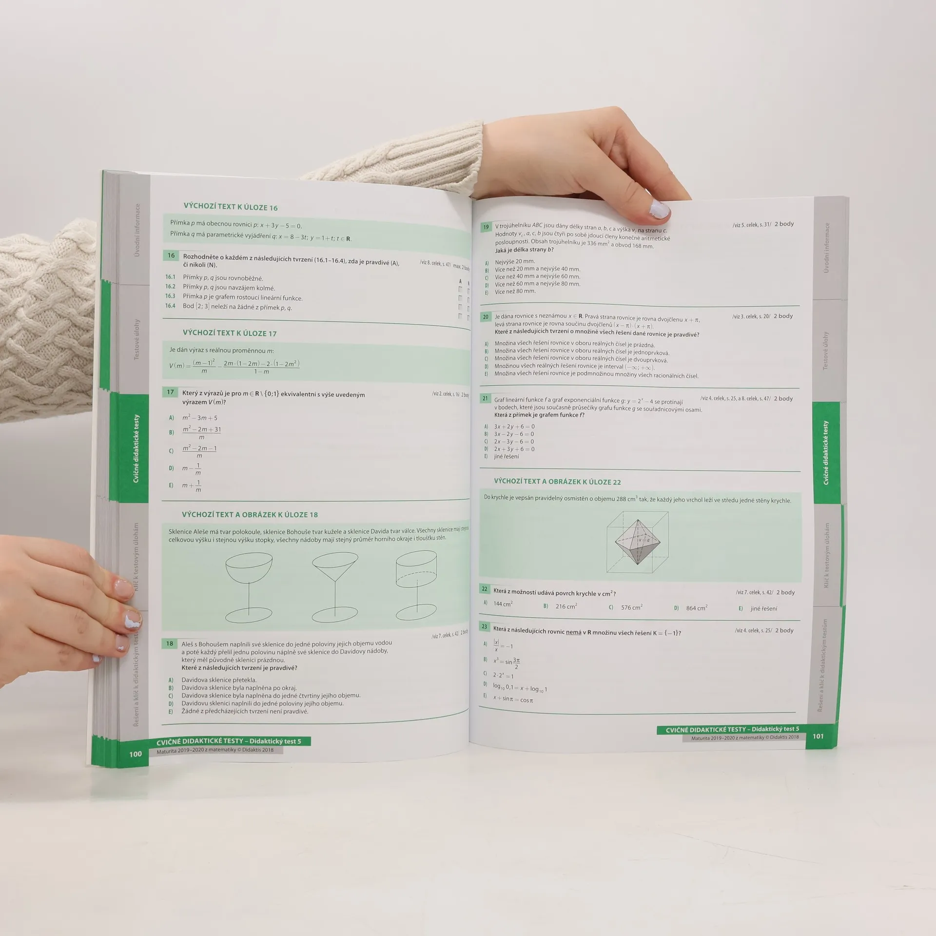 Komplexní příprava na didaktický test z matematiky ve formě cvičných didaktických testů s komentovaným řešením a přípravné sbírky úloh dle tematických celků s nápovědou a klíčem.