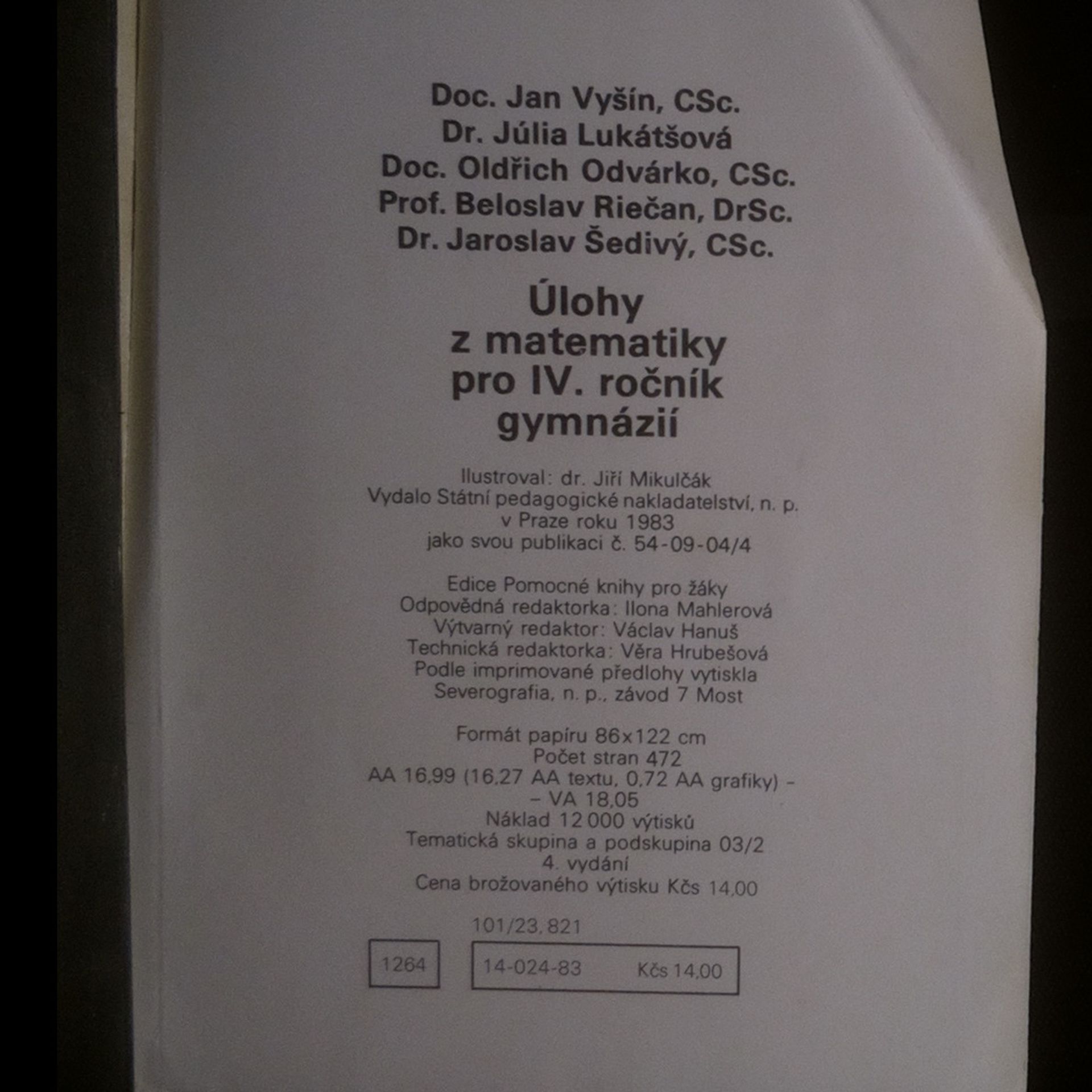 Úlohy z matematiky pro IV. ročník gymnázií, Kolektiv autorů