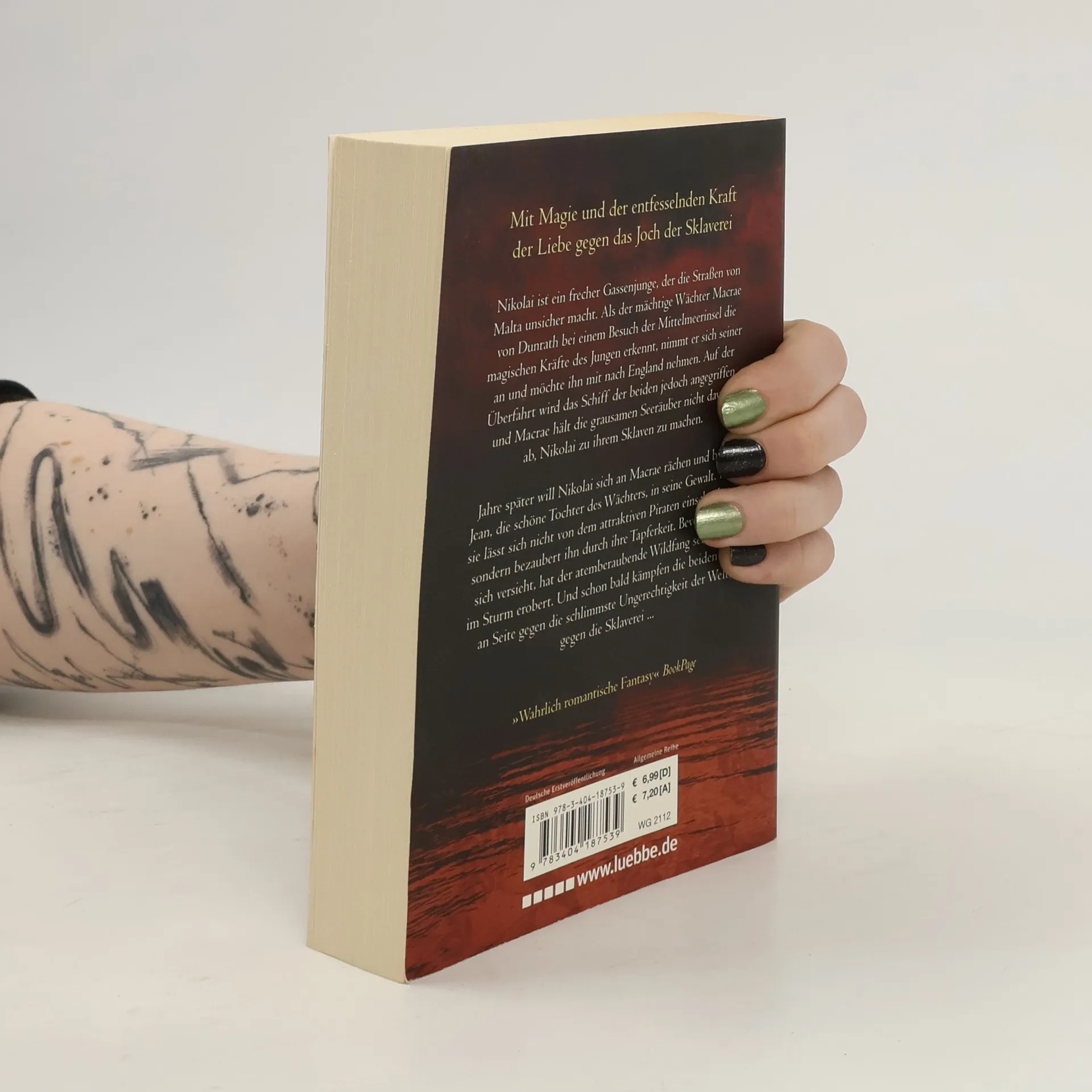 Nikolai ist ein frecher Gassenjunge, der die Straßen von Malta unsicher macht. Als der mächtige Wächter Macrae von Dunrath bei einem Besuch der Mittelmeerinsel die magischen Kräfte des Jungen erkennt, nimmt er sich seiner an und möchte ihn mit nach England nehmen. Auf der Überfahrt wird das Schiff der beiden jedoch angegriffen, und Macrae hält die grausamen Seeräuber nicht davon ab, Nikolai zu ihrem Sklaven zu machen. Jahre später will Nikolai sich an Macrae rächen und bringt Jean, die schöne Tochter des Wächters, in seine Gewalt. Doch sie lässt sich nicht von dem attraktiven Piraten einschüchtern, sondern bezaubert ihn durch ihre Tapferkeit. Bevor Nikolai sich versieht, hat der atemberaubende Wildfang sein Herz im Sturm erobert. Und schon bald kämpfen die beiden Seite an Seite gegen die schlimmste Ungerechtigkeit der Welt, gegen die Sklaverei ...