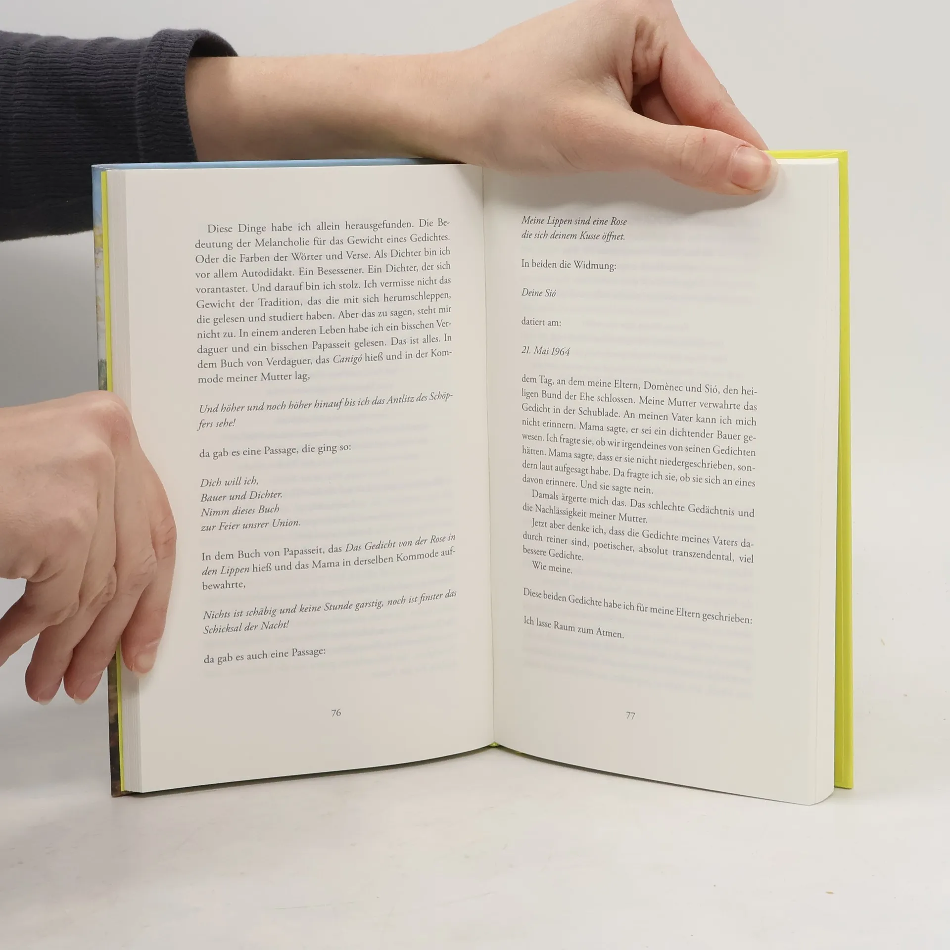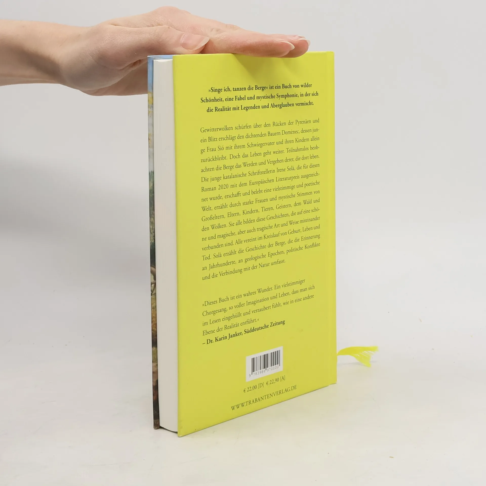 Gewitterwolken schürfen über den Rücken der Pyrenäen und ein Blitz erschlägt den dichtenden Bauern Domènec, dessen junge Frau Sió mit ihrem Schwiegervater und ihren Kindern allein zurückbleibt. Doch das Leben geht weiter. Teilnahmslos beobachten die Berge das Werden und Vergehen derer, die dort leben. Die junge katalanische Schriftstellerin Irene Solà, die für diesen Roman 2020 mit dem Europäischen Literaturpreis ausgezeichnet wurde, erschafft und belebt eine vielstimmige und poetische Welt, erzählt durch starke Frauen und mystische Stimmen von Großeltern, Eltern, Kindern, Tieren, Geistern, dem Wald und den Wolken. Sie alle bilden diese Geschichten, die auf eine schöne und magische, aber auch tragische Art und Weise miteinander verbunden sind. Alle vereint im Kreislauf von Geburt, Leben und Tod. Solà erzählt die Geschichte der Berge, die die Erinnerung an Jahrhunderte, an geologische Epochen, politische Konflikte und die Verbindung mit der Natur umfasst.
