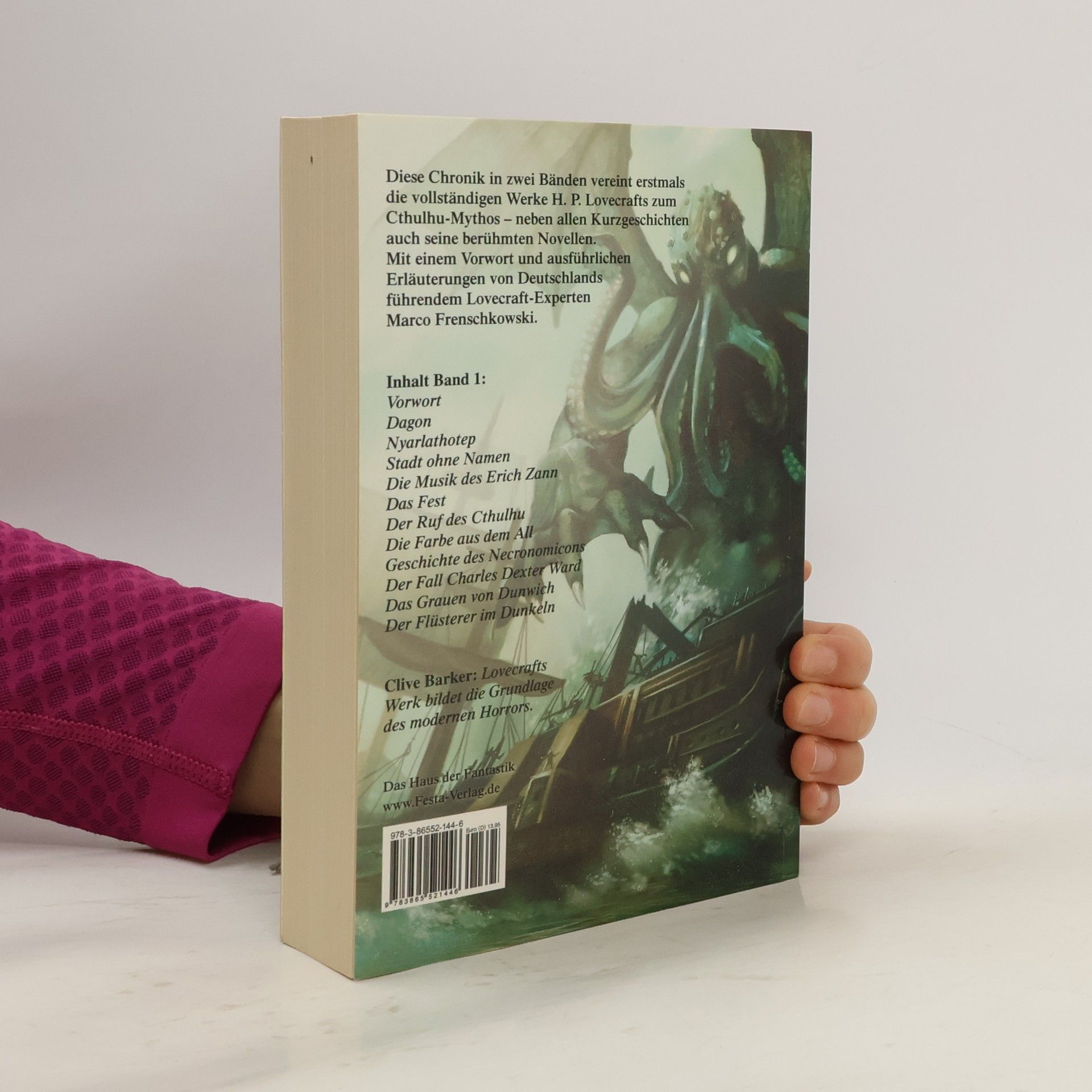 Stephen King: „Der größte Horrorautor des 20. Jahrhunderts ist H. P. Lovecraft – daran gibt es keinen Zweifel.“ Diese Chronik in zwei Bänden vereint erstmals die vollständigen Werke Lovecrafts zum Cthulhu-Mythos – neben allen Kurzgeschichten auch die berühmten Novellen wie BERGE DES WAHNSINNS, DER SCHATTEN ÜBER INNSMOUTH oder DER FALL CHARLES DEXTER WARD. Mit einer Einleitung und ausführlichen Erläuterungen zu den einzelnen Werken von Dr. Marco Frenschkowski. Clive Barker: „Lovecrafts Werk bildet die Grundlage des modernen Horrors.“ Markus Heitz: „Die zahlreichen Geschichten rund um den Cthulhu-Mythos beinhalten für mich bis heute enorme Kraft und Wirkung.“ Michel Houellebecq: „Wir beginnen gerade erst, Lovecrafts Werk richtig einzuordnen, auf gleicher Ebene oder sogar höher als das von Edgar Allan Poe. Auf jeden Fall als ein absolut einzigartiges.“ Michael Chabon: „BERGE DES WAHNSINNS ist eine der großartigsten Novellen der Amerikanischen Literatur. Durch sie habe ich erstmals begriffen, welche Wirkung Literatur haben kann.“ Eine Festa Originalausgabe