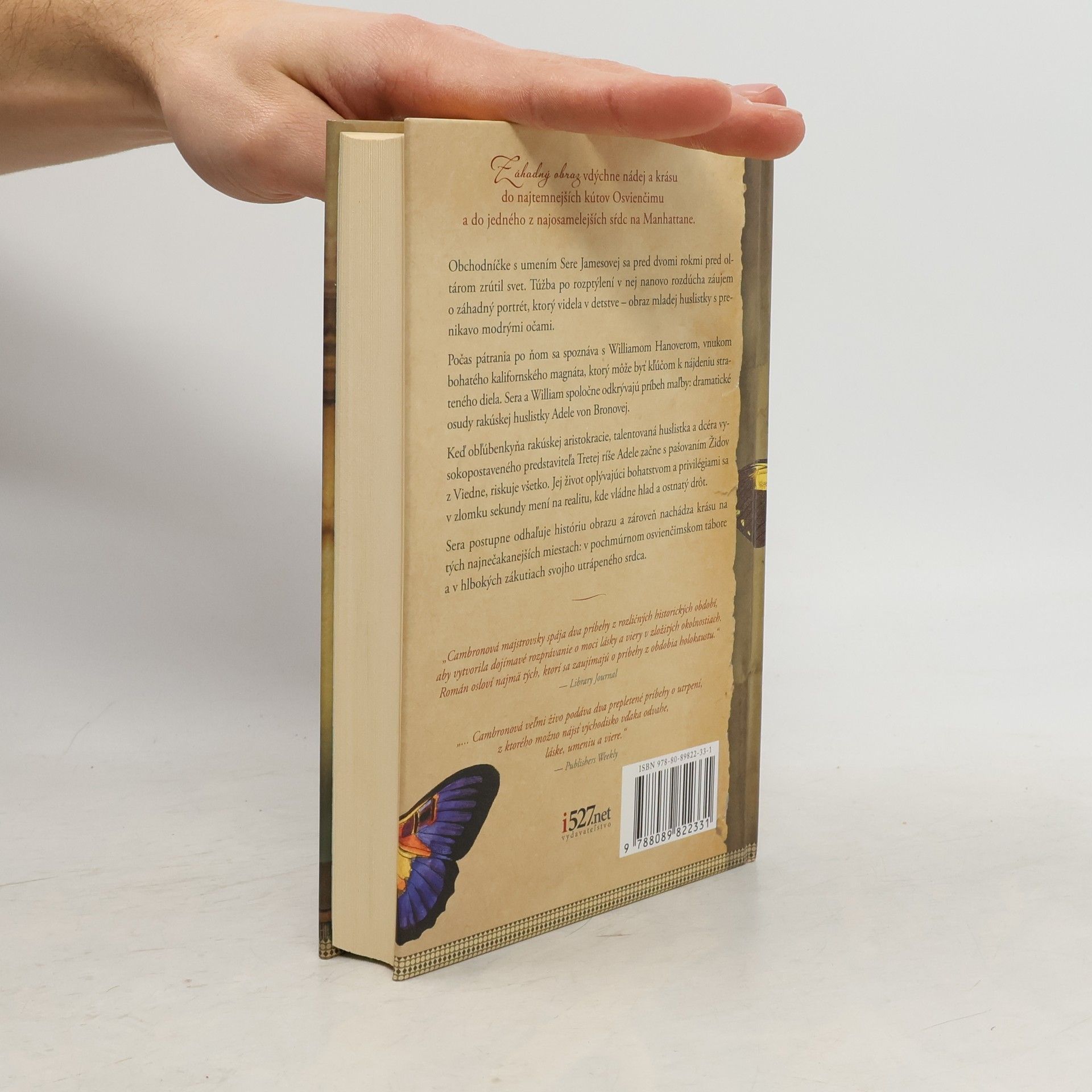 Záhadný obraz vdýchne nádej a krásu do najtemnejších kútov Osvienčimu a do jedného z najosamelejších sŕdc na Manhattane. Súčasnosť: Obchodníčke s umením Sere Jamesovej sa pred dvomi rokmi pred oltárom zrútil svet. Túžba po rozptýlení v nej nanovo rozdúcha záujem o záhadný portrét, ktorý videla v detstve – obraz mladej huslistky s prenikavo modrými očami. Počas pátrania po ňom sa spoznáva s Williamom Hanoverom, vnukom bohatého kalifornského magnáta, ktorý môže byť kľúčom k nájdeniu strateného diela. Sera a William spoločne odkrývajú príbeh maľby: dramatické osudy rakúskej huslistky Adele von Bronovej. Viedeň, 1942: Keď obľúbenkyňa rakúskej aristokracie, talentovaná huslistka a dcéra vysokopostaveného predstaviteľa Tretej ríše Adele začne s pašovaním Židov z Viedne, riskuje všetko. Jej život oplývajúci bohatstvom a privilégiami sa v zlomku sekundy mení na realitu, kde vládne hlad a ostnatý drôt. Sera postupne odhaľuje históriu obrazu a zároveň nachádza krásu na tých najnečakanejších miestach: v pochmúrnom osvienčimskom tábore a v hlbokých zákutiach svojho utrápeného srdca.
