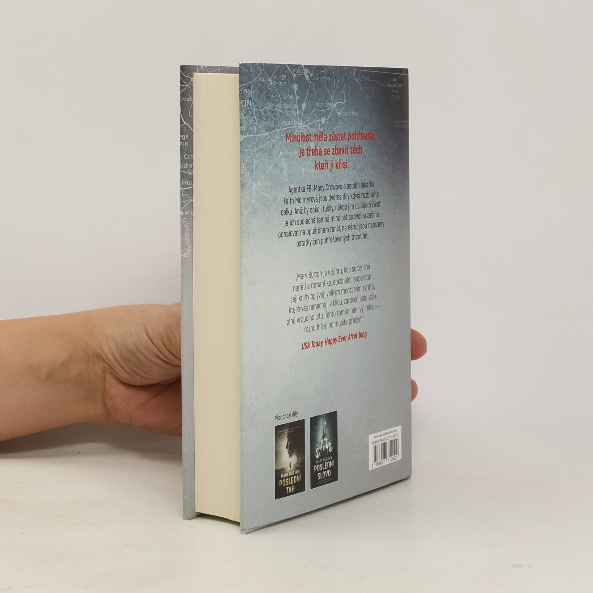 Mary Burton, autorka mnoha bestsellerů, se vrací s thrillerem, z nějž vám bude tuhnout krev žilách. Soudní lékařka Faith McIntyrová se s oběťmi násilných trestných činů setkává každý den, nicméně tato osoba je jiná. Žena v kómatu, jejíž život visí na vlásku poté, co ji srazilo auto, je rychle identifikována jako zvláštní agentka FBI Macy Crowová. Zůstává ale záhadou, co tato žena z Quantica dělala v místní temné uličce krátce po půlnoci. A další záležitost je ještě znepokojivější. Macy jako by byla dokonalou kopií Faith samotné. Faith náhle zjišťuje, že její dětství skrývá více tajemství, než si dosud myslela. Následuje stopy, které jí zanechala Macy, a společně s texaským rangerem Mitchellem Haydenem objevuje opuštěný ranč, na jehož pozemku je čekají další hrůzné nálezy. Ze stop, které postupně odhalují, vyplývá, že jde o mimořádně zvrácený a zapletený případ. Kdo ale v pozadí tahá za nitky? A podaří se Faith s Haydenem jejich plány překazit dřív, než bude pro všechny pozdě?