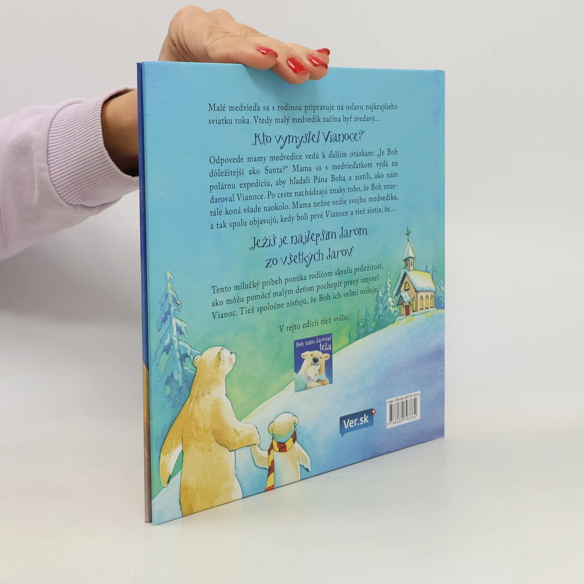 Malé medvieďa sa s rodinou pripravuje na oslavu najkrajšieho sviatku roka. Vtedy malý medvedík začína byť zvedavý... Kto vymyslel Vianoce? Odpovede mamy medvedice vedú len k ďalším otázkam: Je Boh dôležitejší ako Santa? Mama sa s medvieďatkom vydá na polárnu expedíciu, aby hľadali Pána Bohaa zistili, ako nám daroval Vianoce. Po ceste nachádzajú známky toho, že Boh neustále koná všade okolo. Mama nežne vedie medvedíka a tak spolu objavujú, kedy boli prvé Vianoce a tiež zistia že... Ježiš je najlepším darom zo všetkých darov. Tento milučný príbeh ponúka rodičom skvelú príležitosť ako pomôcť malým deťom pochopiť pravý zmysel Vianoc a aby spoločne zistili ako ich Boh miluje. Kniha je plnofarebná, s veľkými a nádhernými ilustráciami, vhodná pre dievčatá aj chlapcov od 2-7 rokov.