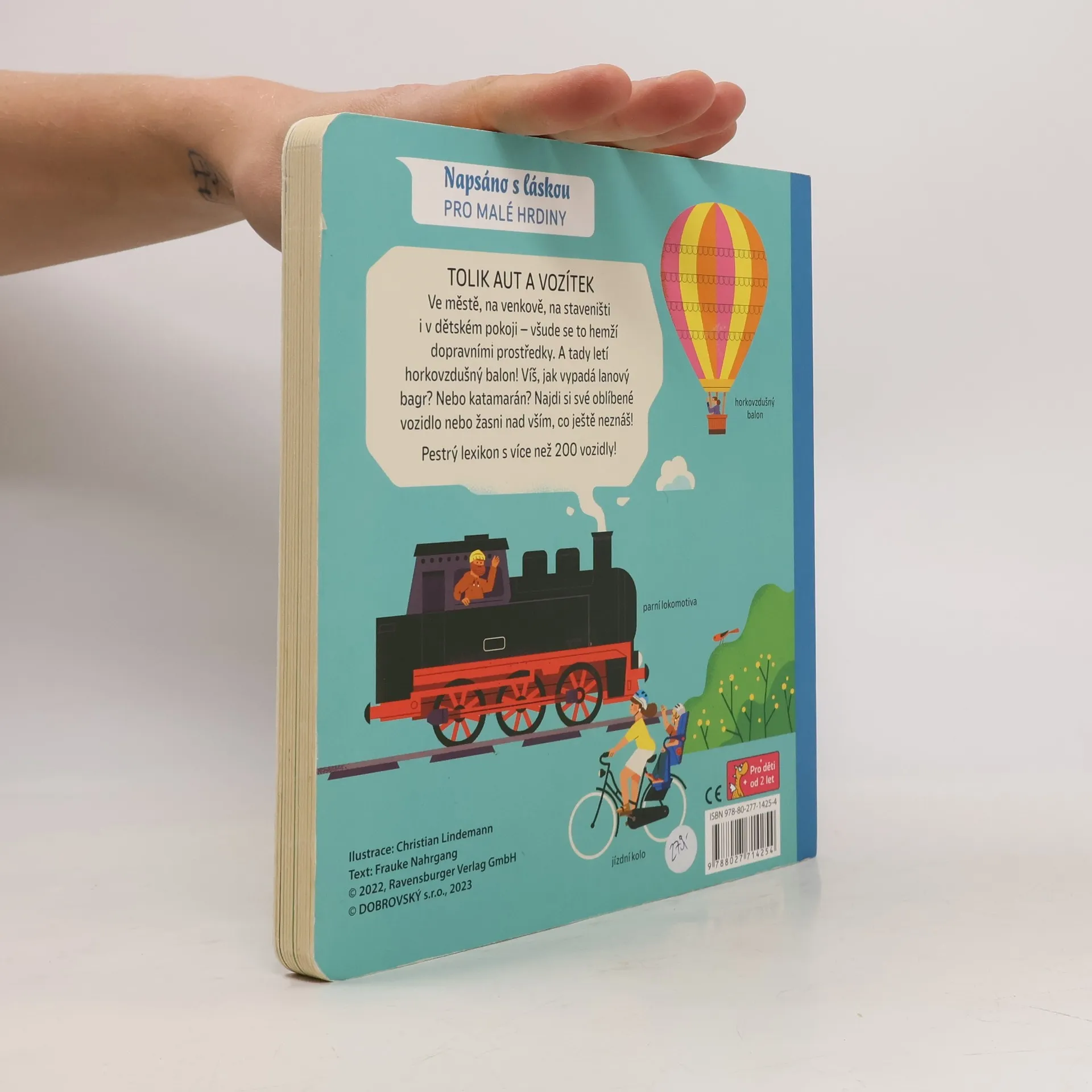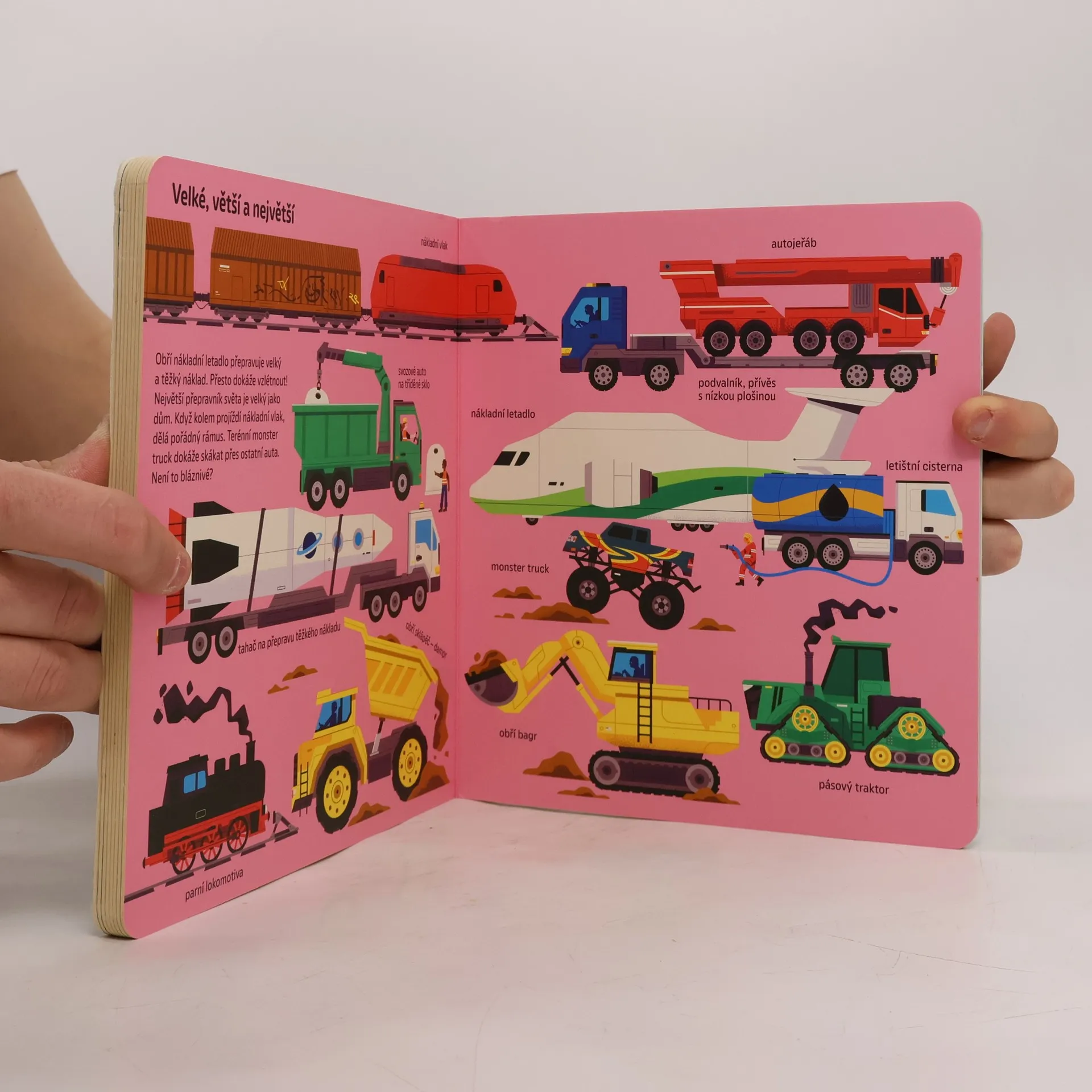 Knížka dětem představí přes 200 vozidel používaných na farmě, na stavbě, na vodě, ve vzduchu i ve městě. Pestrobarevné stránky zvou k dobrodružnému objevování nových slov a termínů.