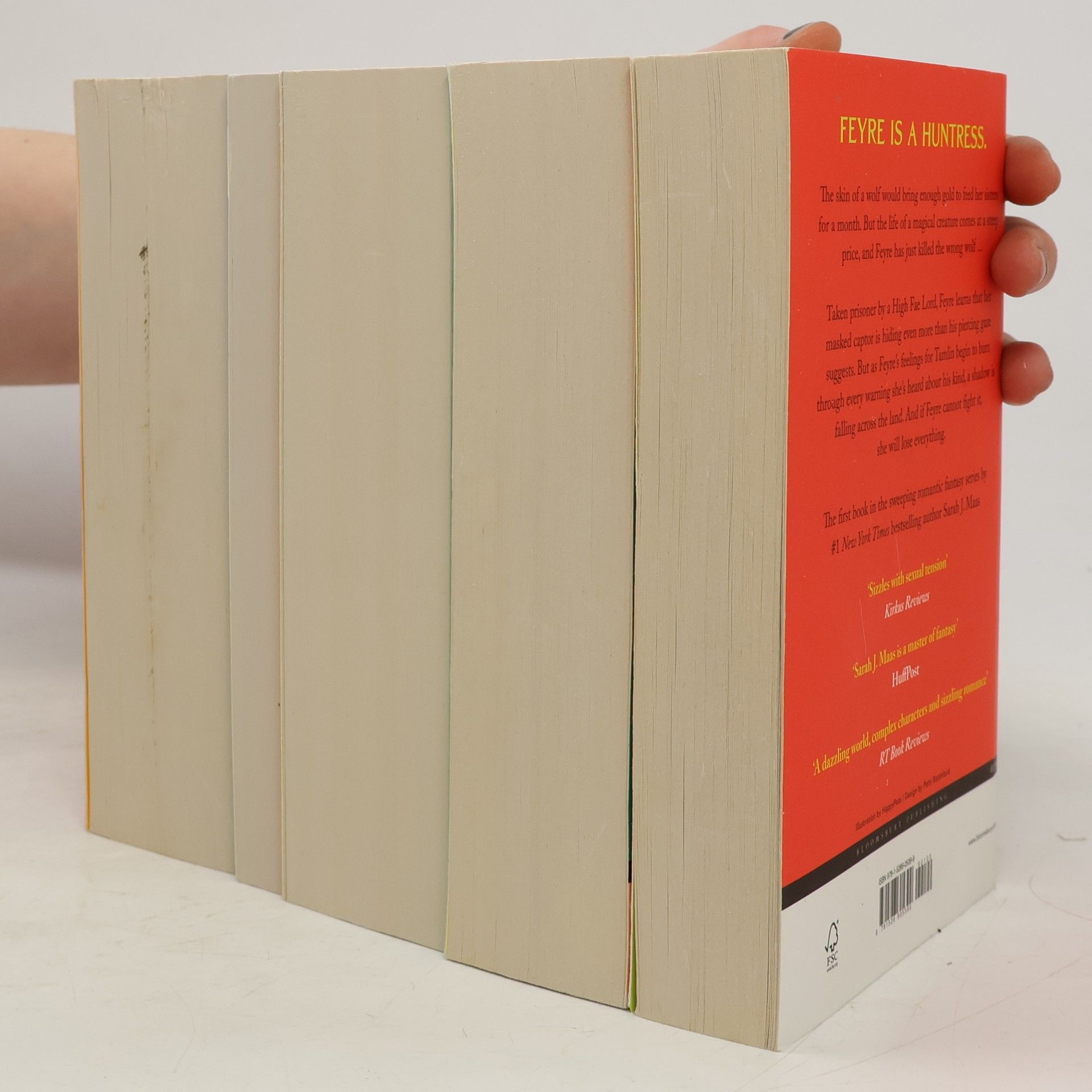 This book set by Sarah J. Maas encompasses the complete narrative arc of the "A Court of Thorns and Roses" series, blending elements of fantasy, romance, and adventure. The story follows Feyre Archeron, a young huntress who becomes entangled in the world of the Fae after killing a wolf in the woods. As she navigates the complexities of this magical realm, she encounters key characters such as Tamlin, a High Fae lord, and Rhysand, the enigmatic leader of the Night Court. Themes of love, sacrifice, and the struggle for power are explored throughout the series, alongside the development of Feyre's character from a mortal to a formidable figure within the Fae world. The narrative addresses issues of trauma, resilience, and the consequences of choices, providing a multifaceted exploration of its characters' journeys across five volumes.