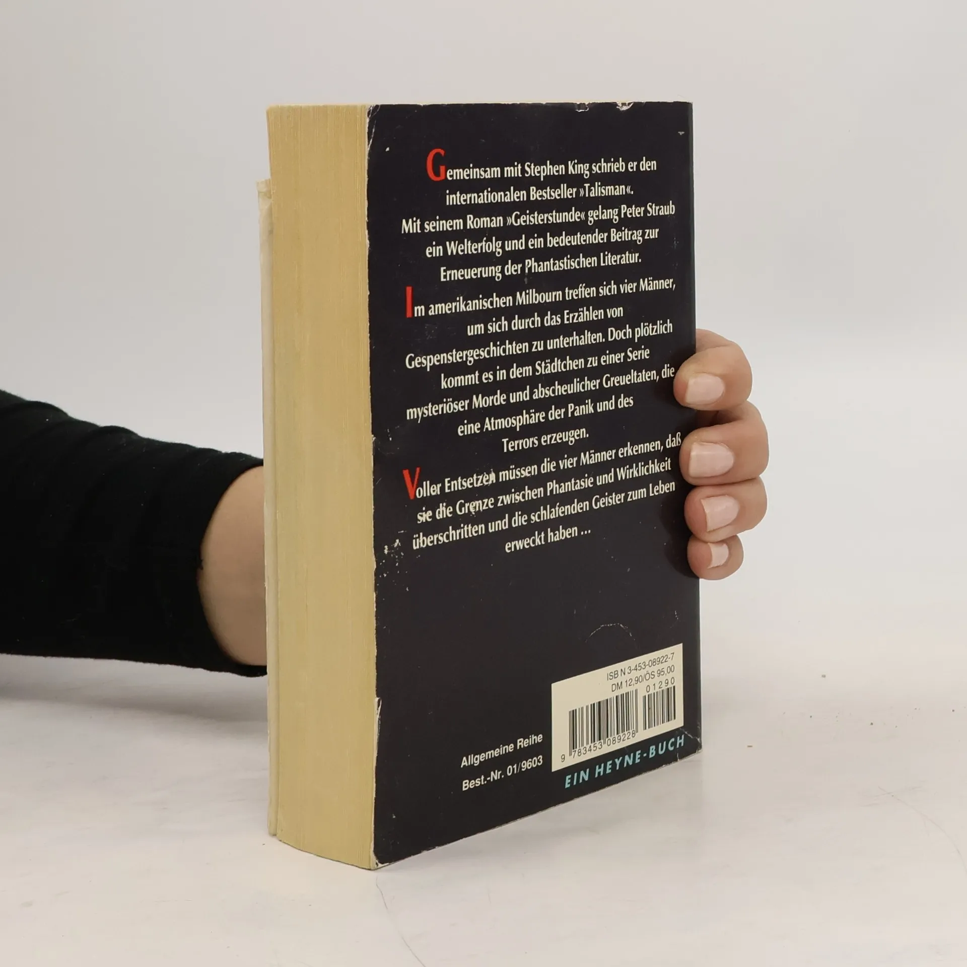 Gemeinsam mit Stephen King schrieb er den internationalen Bestseller »Talisman«. Mit seinem Roman »Geisterstunde« gelang Peter Straub ein Welterfolg und ein bedeutender Beitrag zur Erneuerung der Phantastischen Literatur. Im amerikanischen Milbourn treffen sich vier Männer, um sich durch das Erzählen von Gespenstergeschichten zu unterhalten. Doch plötzlich kommt es in dem Städtchen zu einer Serie mysteriöser Morde und abscheulicher Greueltaten, die eine Atmosphäre der Panik und des Terrors erzeugen. Voller Entsetzen müssen die vier Männer erkennen, daß sie die Grenze zwischen Phantasie und Wirklichkeit überschritten und die schlafenden Geister zum leben erweckt haben ...