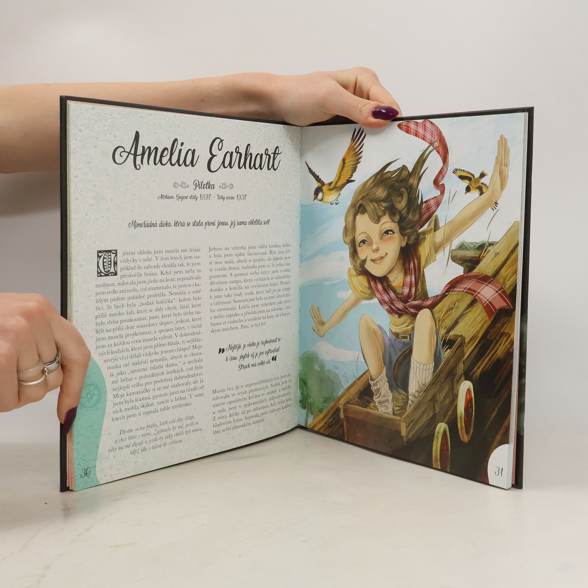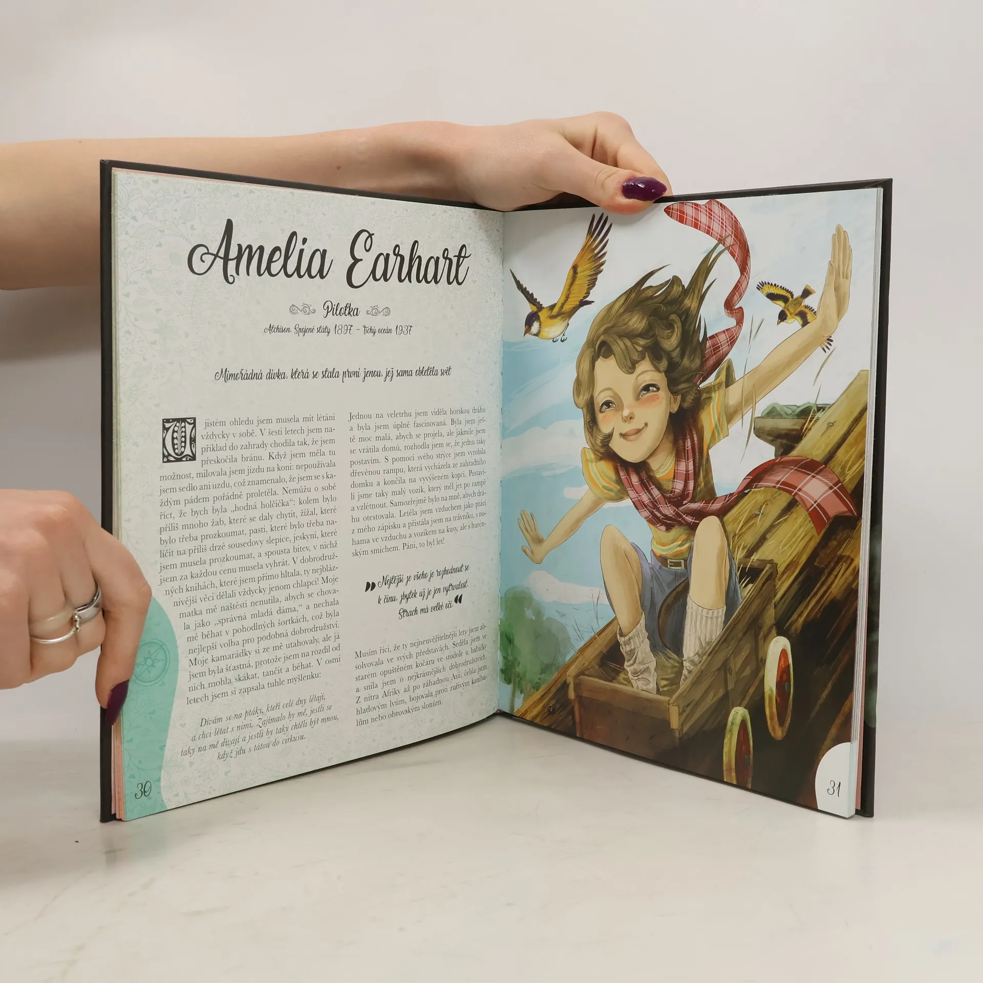 Vybrali jsme pro tebe příběhy dvaceti dívek, malých slečen, které samy sebe zpočátku nepovažovaly za mimořádné, ale postupně se mimořádnými staly, často aniž by si to samy uvědomovaly. Knížka originálním a poutavým způsobem představuje malým a mladým čtenářům a čtenářkám významné ženy, které se proslavily v oblasti vědy, umění, politiky nebo například sportu. Jejich životní příběhy jsou vyprávěny v první osobě formou autobiografie, která čtenáře snadno vtáhne do vyprávění a přiblíží jim neobyčejné osudy i úspěchy žen jako Coco Chanel, Edith Piaf nebo Agatha Christie. Co na této knize zaujme na první pohled, jsou překrásné celostránkové ilustrace.