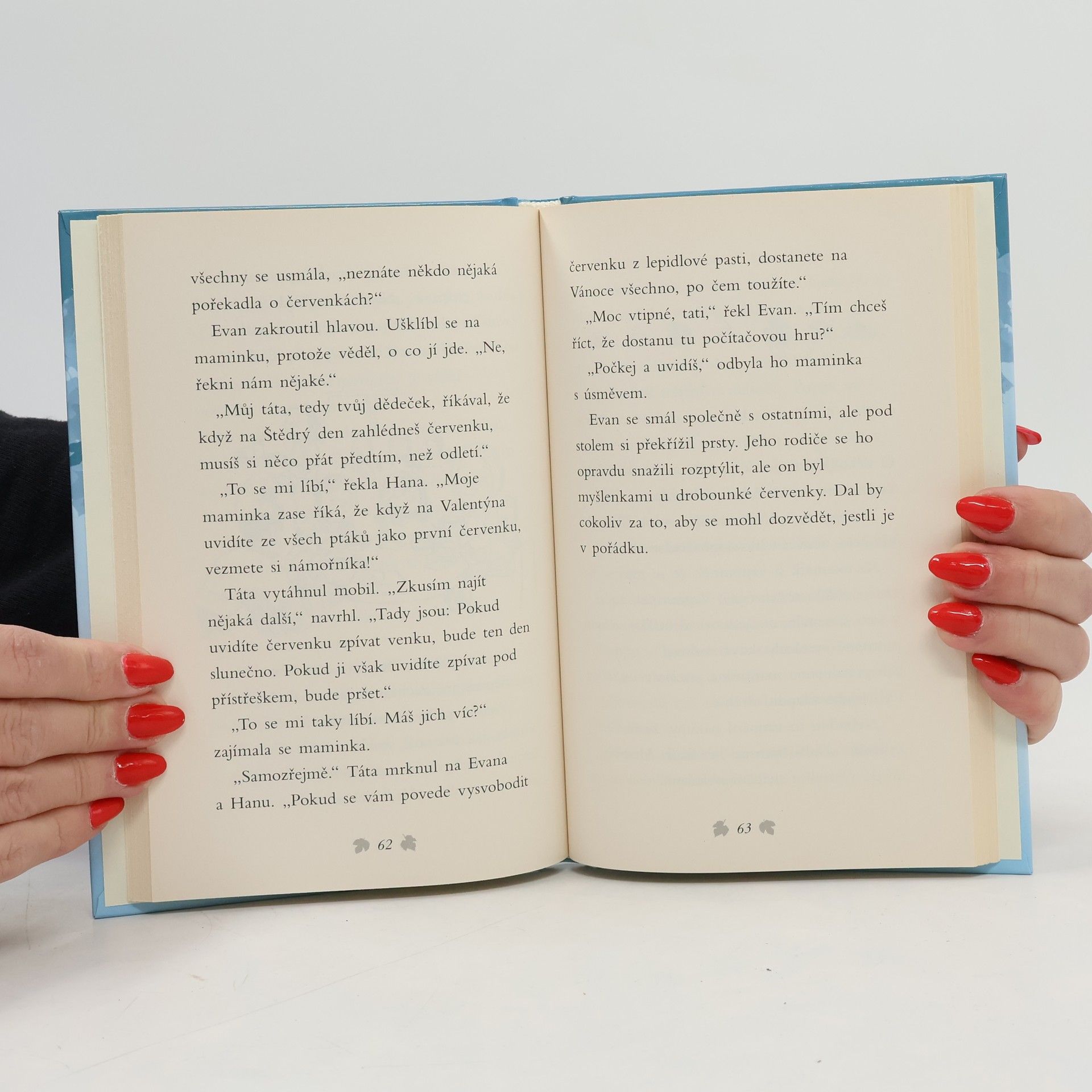 Příběh se šťastným koncem, který se skutečně stal! Evan s Hanou najdou ve sněhu promrzlou červenku. Chytila se do pasti a nemůže se hýbat. Hned zavolají na pomoc zvířecí záchranáře. Podaří se jim ptáčka vyprostit včas? Stále totiž velmi hustě chumelí a sněhu přibývá… Krásný příběh o lidech s dobrým srdcem, kteří pomáhají zachraňovat zvířátka.