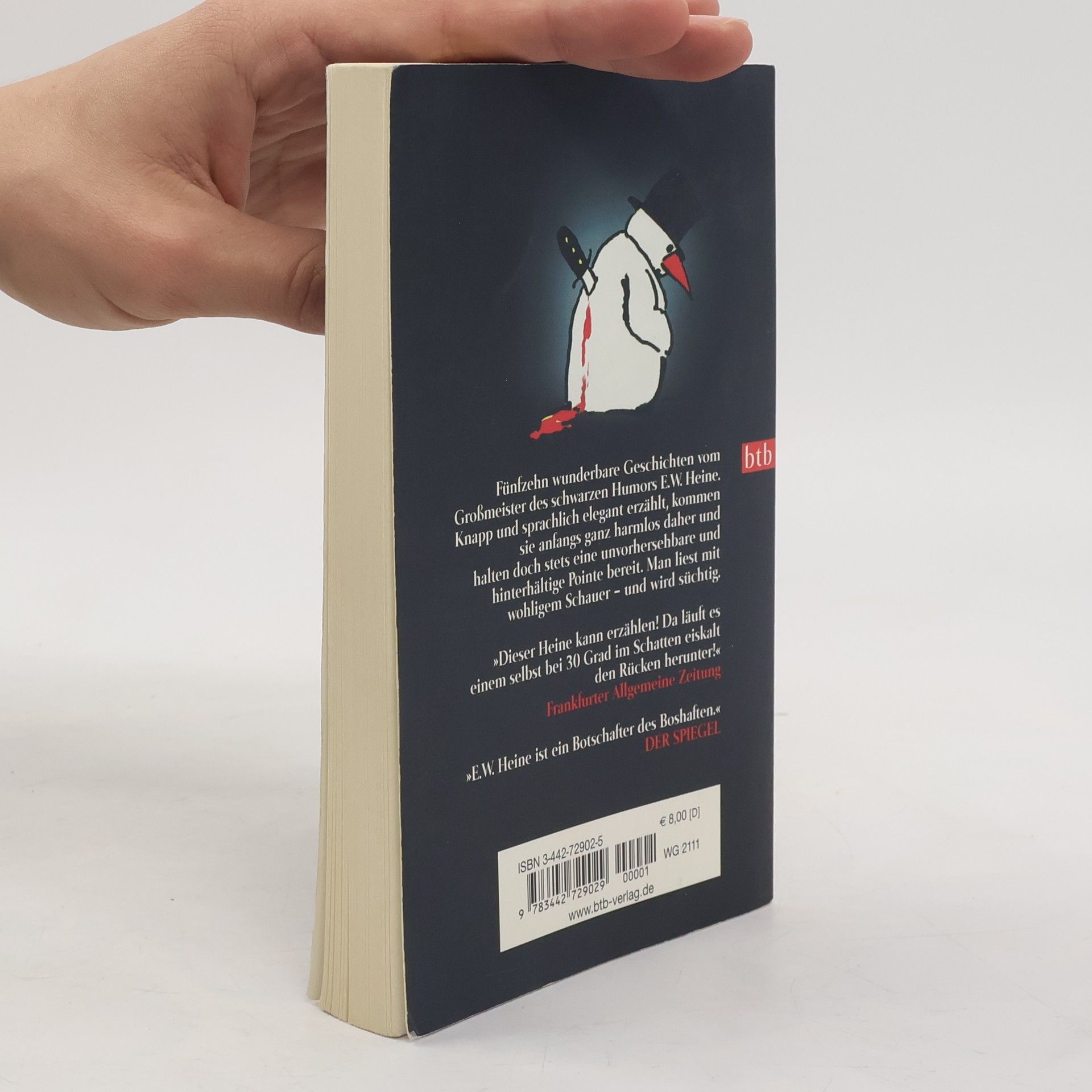 E. W. Heine, der Architekt und Bestsellerautor, und seine skurril-makabren Kille Kille Geschichten gehören untrennbar zusammen. Sei es das Schicksal jenes Diebes, der vor Gericht freigesprochen wird und sich am Ende erkundigt, ob er die Beute nun behalten könne. Oder die schaurig-schöne Erzählung über die wahre Entstehung des Porträts der Mona Lisa. Immer folgt der Leser dem Autor ahnungslos in den Alltag zwischenmenschlicher Beziehungen und gewöhnlicher Zwischenfälle, um sich plötzlich einer makabren Pointe gegenüber zu sehen. Heine gelingt dabei immer wieder der grandiose Drahtseilakt zwischen herrlicher Unterhaltung und boshaftem Sarkasmus. „Heine schleicht sich auf Samtpfötchen ins Gemüt seiner Leser und richtet dort erhebliche Verstörungen an.“ Stuttgarter Zeitung