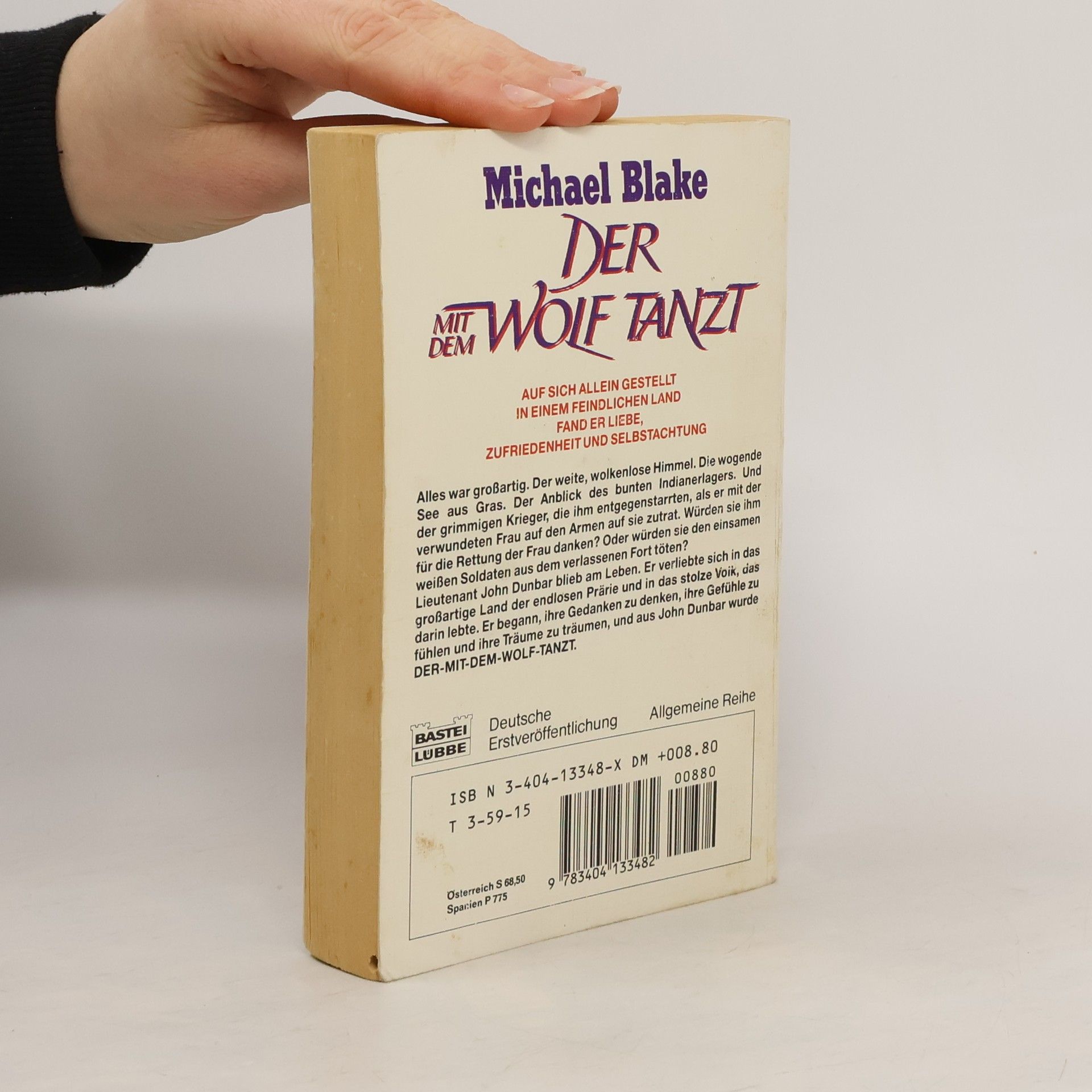 Auf sich allein gestellt, in einem feindlichen Land fand er Liebe, Zufriedenheit und Selbstachtung. Alles war großartig. Der weite, wolkenlose Himmel. Die wogende See aus Gras. Der Anblick des bunten Indianerlagers. Und der grimmigen Krieger, die ihm entgegenstarrten, als er mit der verwundeten Frau auf den Armen auf sie zutrat. Würden sie ihm für die Rettung der Frau danken? Oder würden sie den einsamen weißen Soldaten aus dem verlassenen Fort töten? Lieutenant John Dunbar blieb am Leben. Er verliebte sich in das großartige Land der endlosen Prärie und das stolze Volk, das darin lebte. Er begann, ihre Gedanken zu denken, ihre Gefühle zu fühlen und ihre Träume zu träumen, und aus John Dunbar wurde Der mit dem Wolf tanzt.