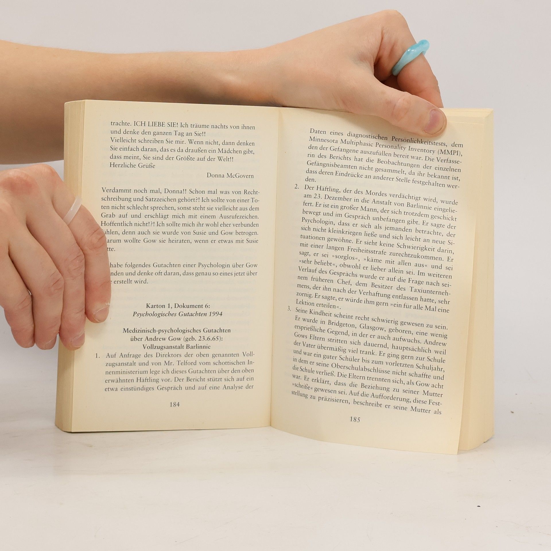 Ian Harriot kann es nicht fassen. Seine Frau Susie, 30 Jahre alt, Gerichtspsychiaterin, soll wegen Mordes an dem mehrfachen Frauenmörder Andrew Gow verurteilt werden, den sie in der Haft betreut hat. Ian ist von Susies Unschuld überzeugt. Um entlastende Hinweise zu finden, stellt er das ganze Haus auf den Kopf. Doch je mehr Material er anhäuft, desto größer werden seine Zweifel. Offenbar hat ihn seine Frau seit Jahren betrogen und hintergangen ..