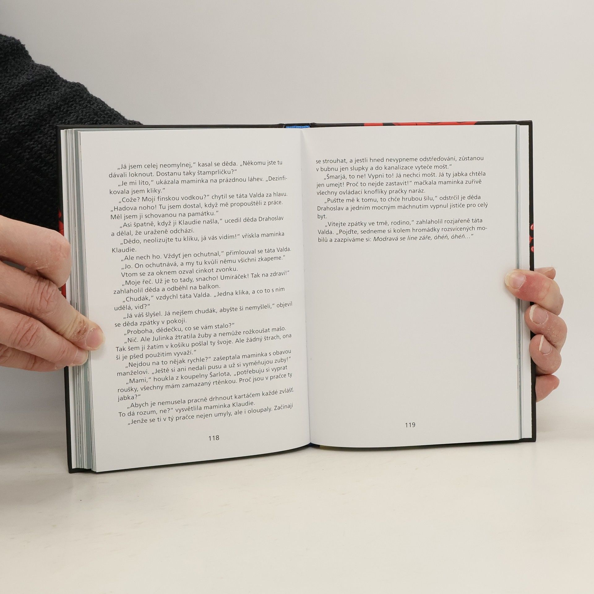 Rodino, přichystal jsem pro nás fantastickou dovolenou, pronesl při nedělním obědě tatínek a tajuplně se usmál. A tak o jarních prázdninách v jedné chatě nastala očistná terapie. Když po nekonečně dlouhých dnech ze srubu mátožně vylezlo šest sinalých, špinavých, prochladlých, mžourajících postav, bláhově si všichni mysleli, že útrapám je konec. Nikdo netušil, že je čekají mnohem těžší zkoušky. Neobyčejná rodina v neobyčejném čase úpí, ovšem čtenář se baví!