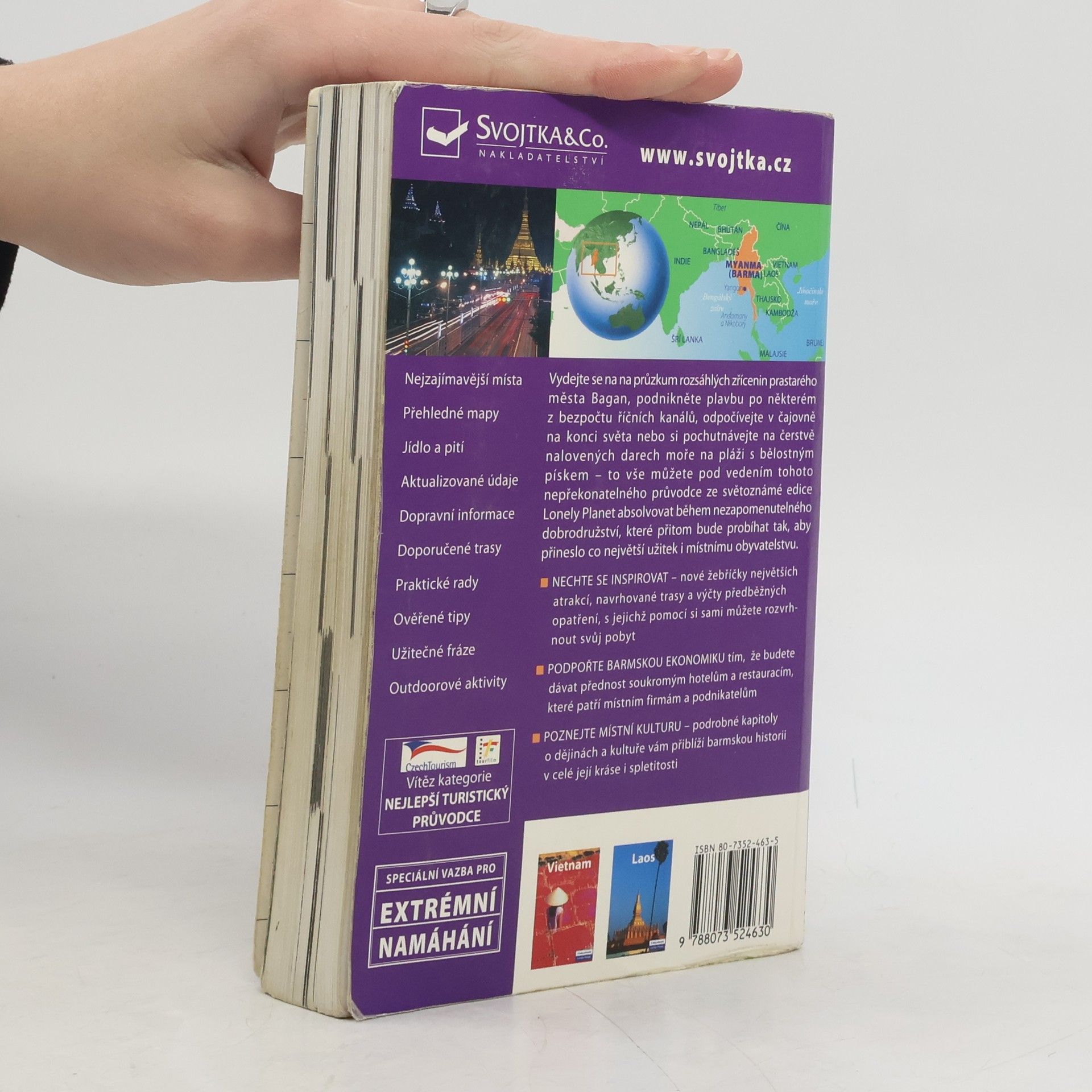 Prozkoumejte rozsáhlé starobylé zříceniny v Baganu, plavte se labyrintem vodních průplavů, relaxujte v příjemné čajovně nebo ochutnejte čerstvé plody moře na bělostné písečné pláži. Tento nepřekonatelný průvodce z edice Lonely Planet vám ukáže, jak nejlépe poznat tuto málo navštěvovanou zemi, a zároveň vám pomůže chovat se citlivě ke zdejším kulturám.