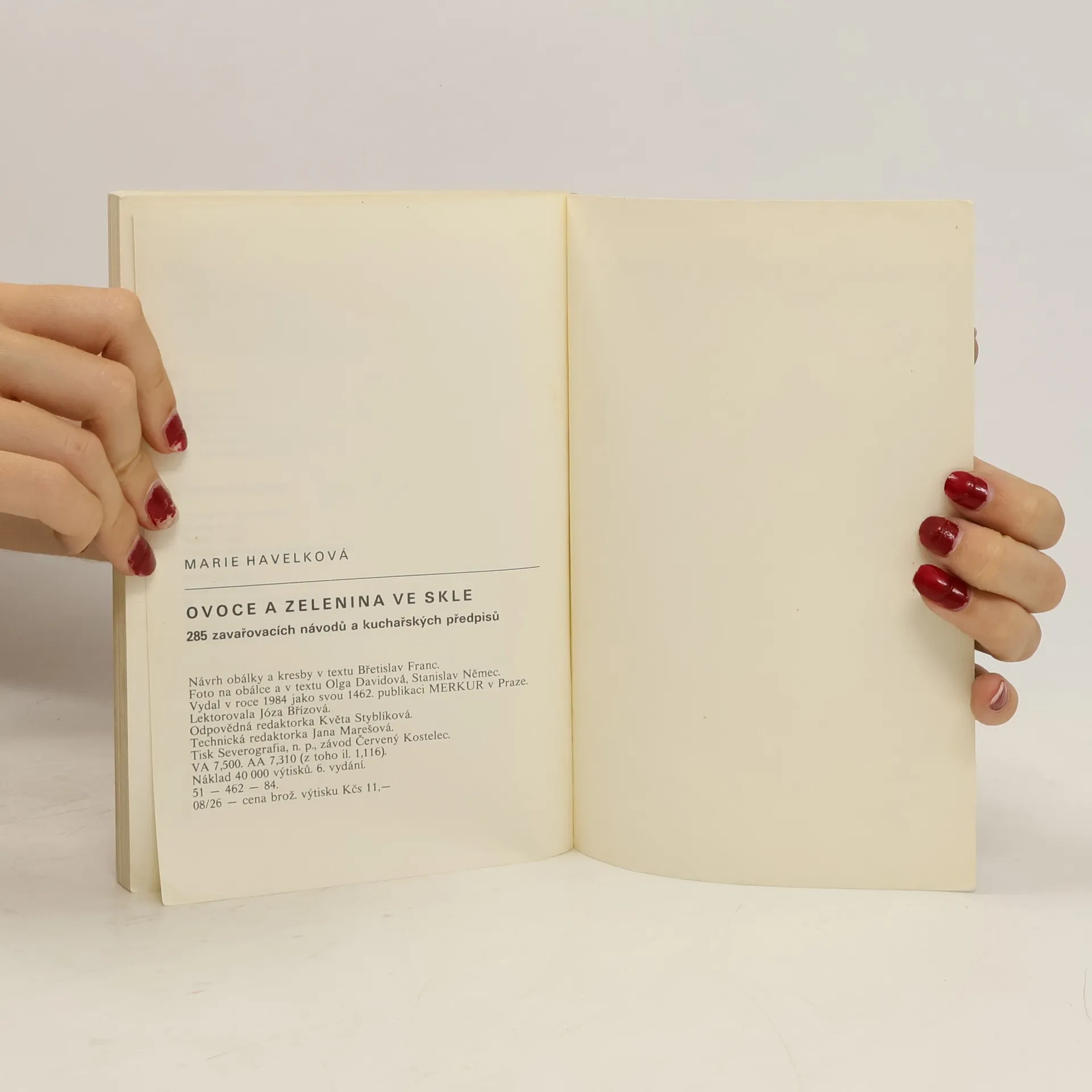 Praktické rady, jaké prostředky a pomůcky je nezbytné si připravit pro jednotlivé způsoby konzervace, tvoří úvodní část příručky. Další je souborem návodů a předpisů k zavařování ovoce a zeleniny, zejména k přípravě různých jídel z konzervovaných produktů. Kniha obsahuje 288 zavařovacích návodů a kuchařských předpisů. 6.vydání.