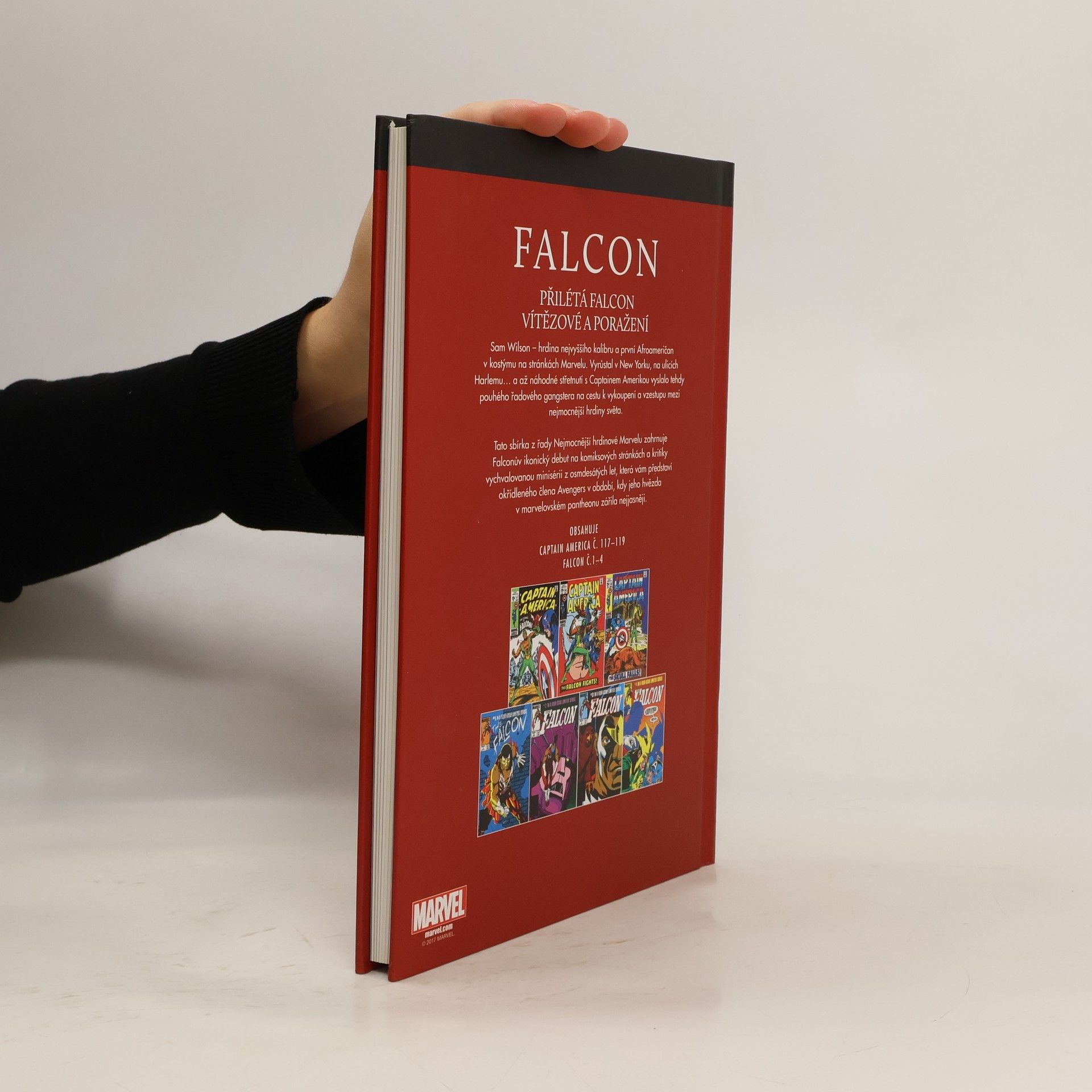 Sam Wilson - hrdina nejvyššího kalibru a první Afroameričan v kostýmu na stránkách Marvelu. Vyrůstal v New Yorku , na ulicích Harlemu... a až náhodné střetnutí s Captainem Amerikou vyslalo tehdy pouhého řadového gangstera na cestu k vykoupení a vzestupu mezi nejmocnější hrdiny světa. Tato sbírka z řady Nejmocnější hrdinové Marvelu zahrnuje Falconův ikonický debut na komiksových stránkách a kritiky vychvalovanou minisérii z osmdesátých let , která vám představí okřídleného člena Avengers v období , kdy jeho hvězda v marvelovském pantheonu zářila nejjasněji. Obsahuje: Přilétá... Falcon ! Falcon jde do boje ! Skullův pád ! Vítězové a poražení